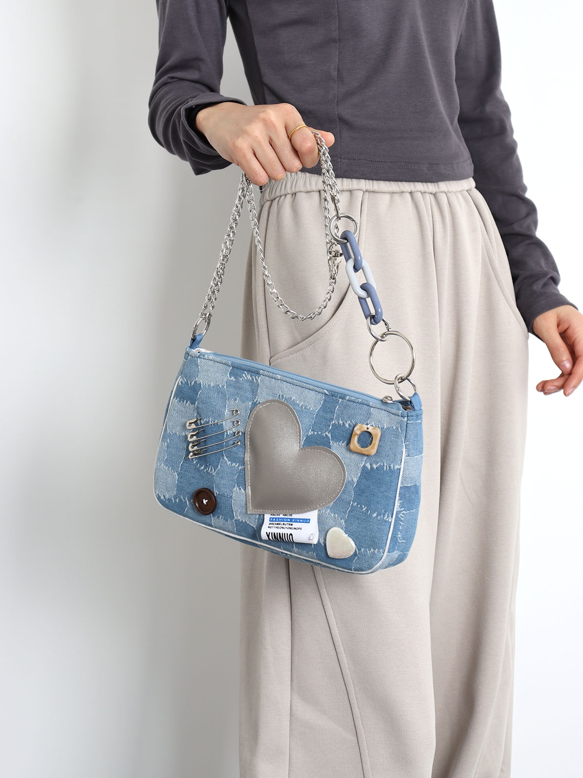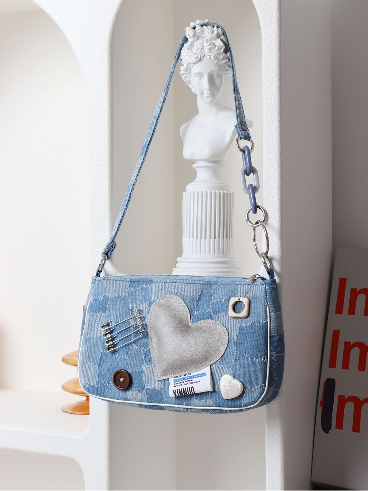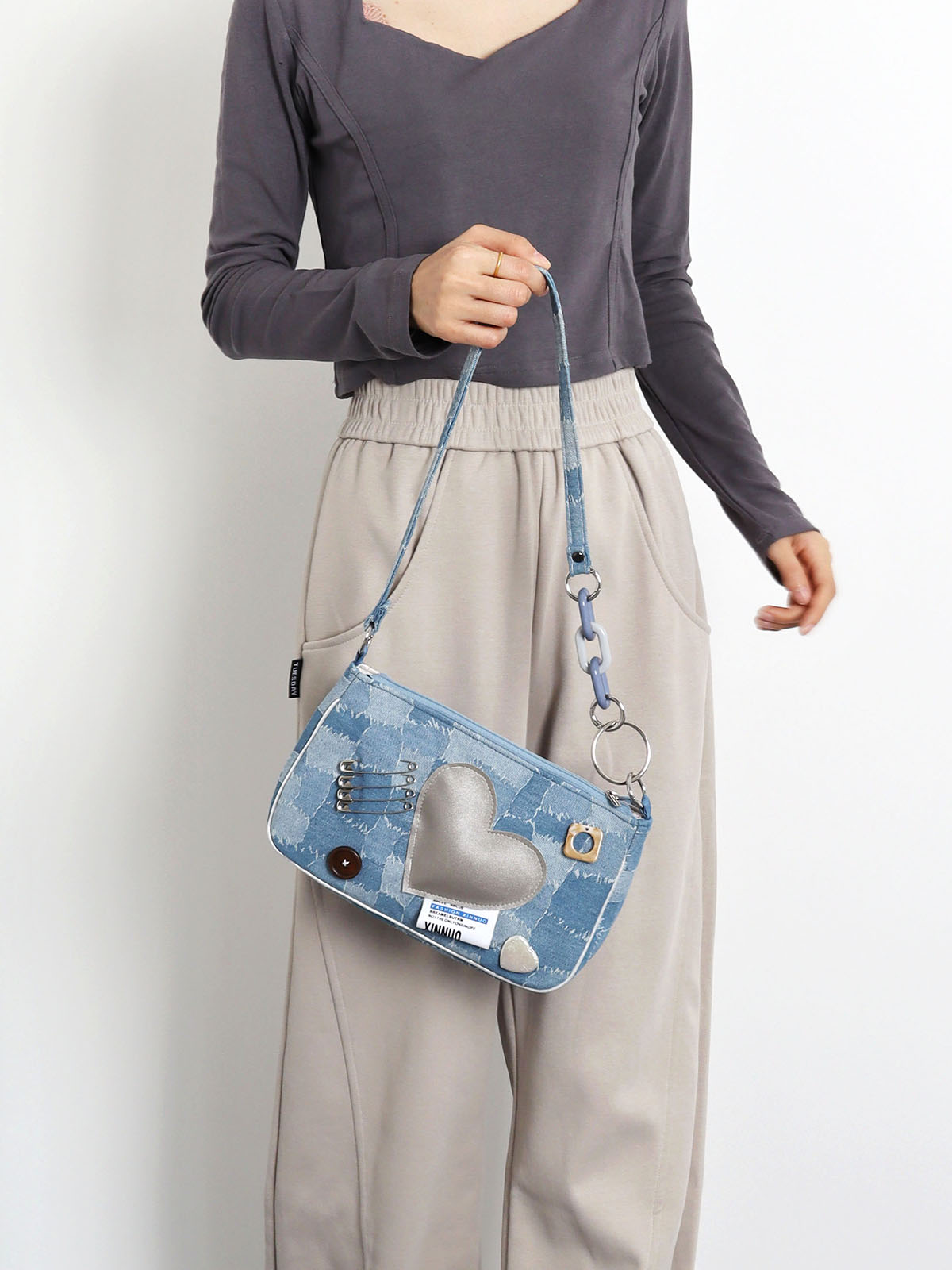 Sweet Cool Heart Cowboy Underarm Bag Women Y2k Chain Crossbod – Y2k Outfits