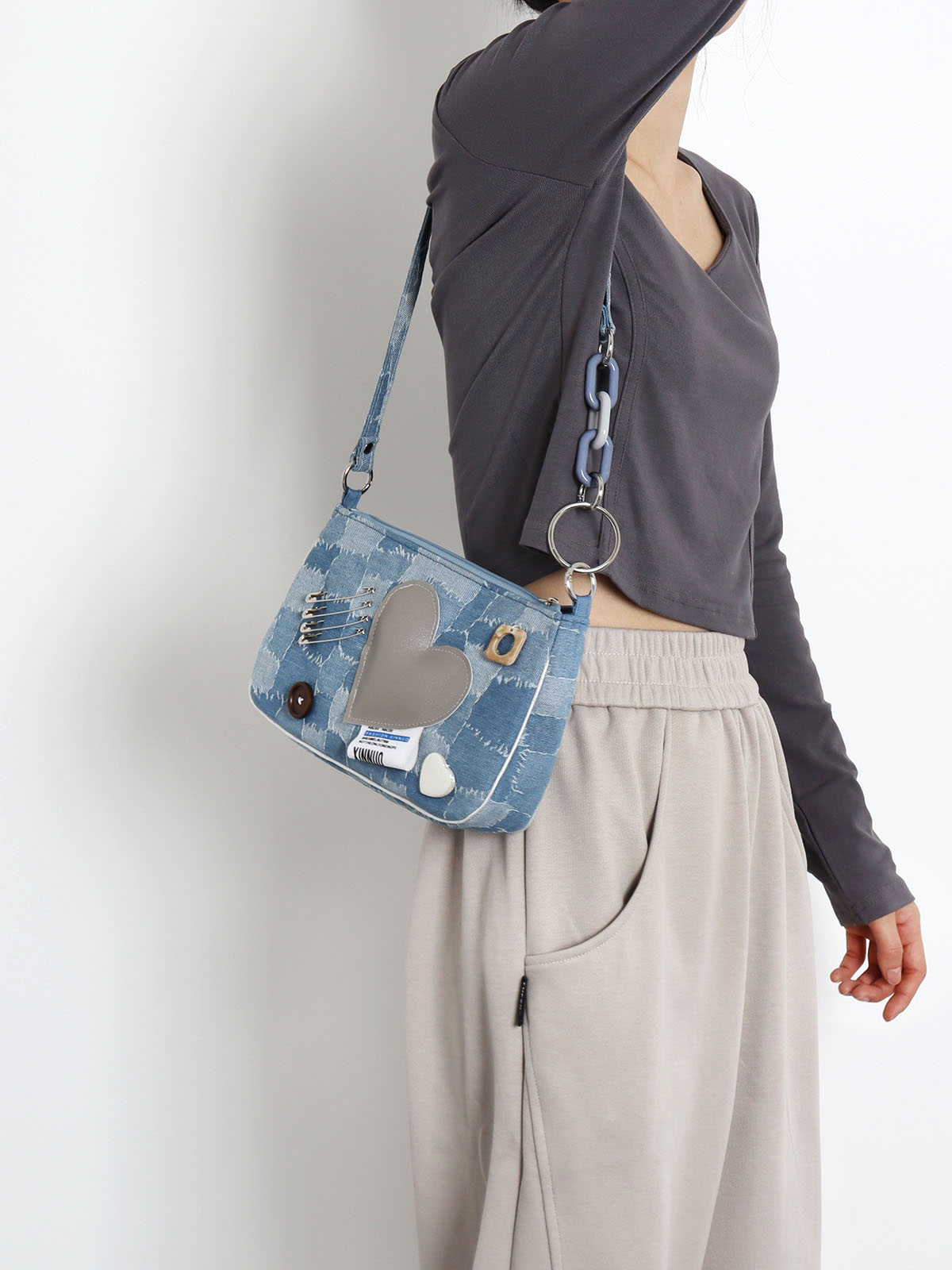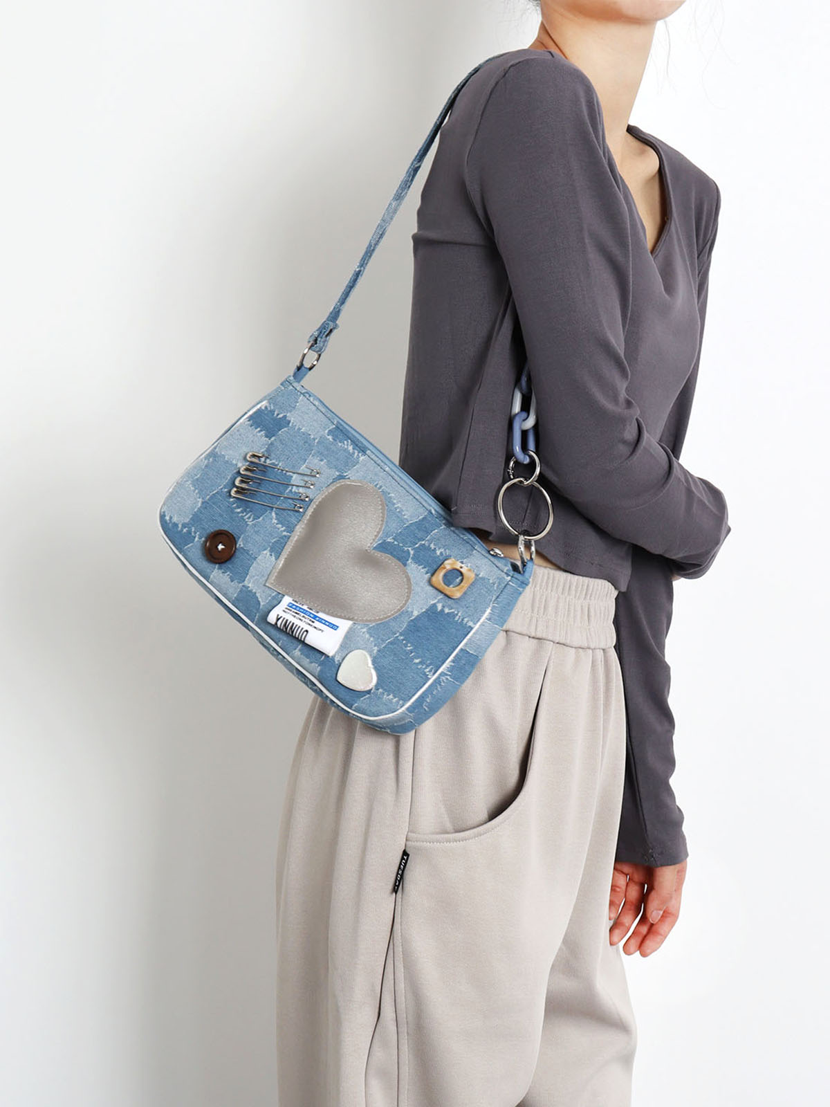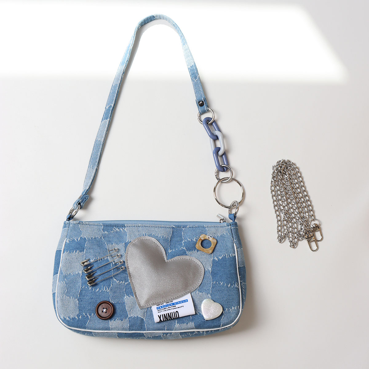 Sweet Cool Heart Cowboy Underarm Bag Women Y2k Chain Crossbod – Y2k Outfits