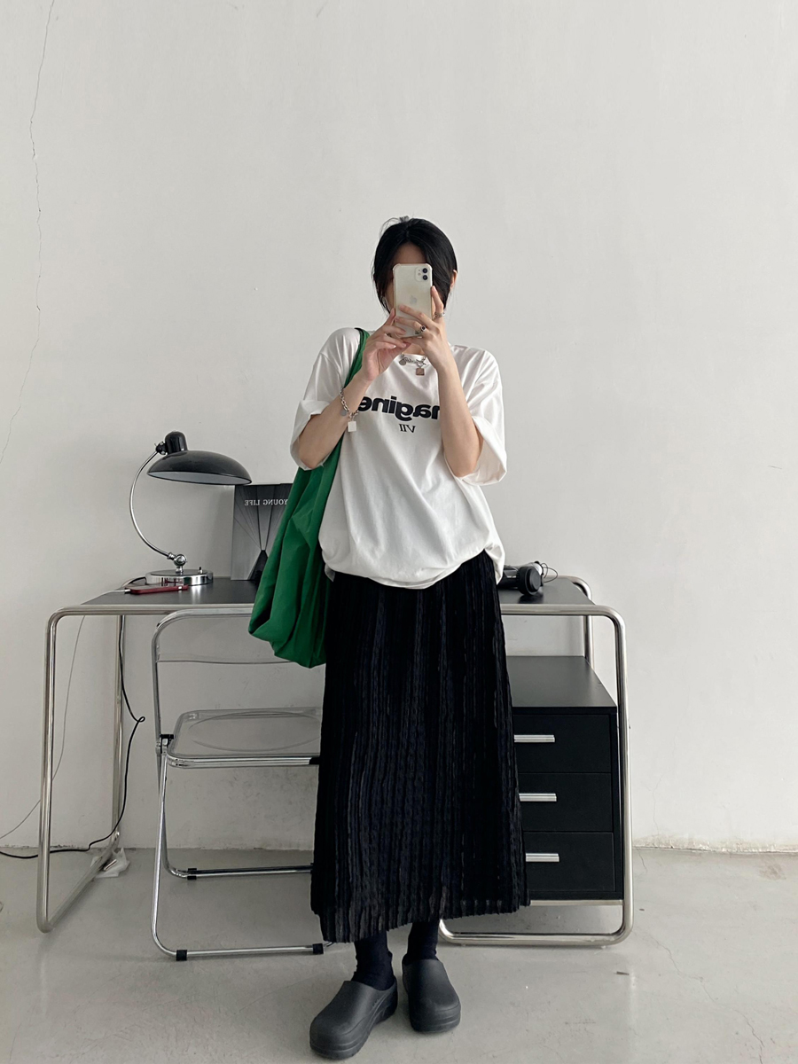 Textured Pleated Midi Skirt Women High Waisted a Line, Loos – Spring Outfit