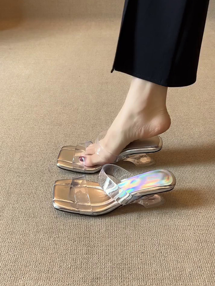 Transparent One Strap Sheepskin High Heels for Effortless Summer Fits