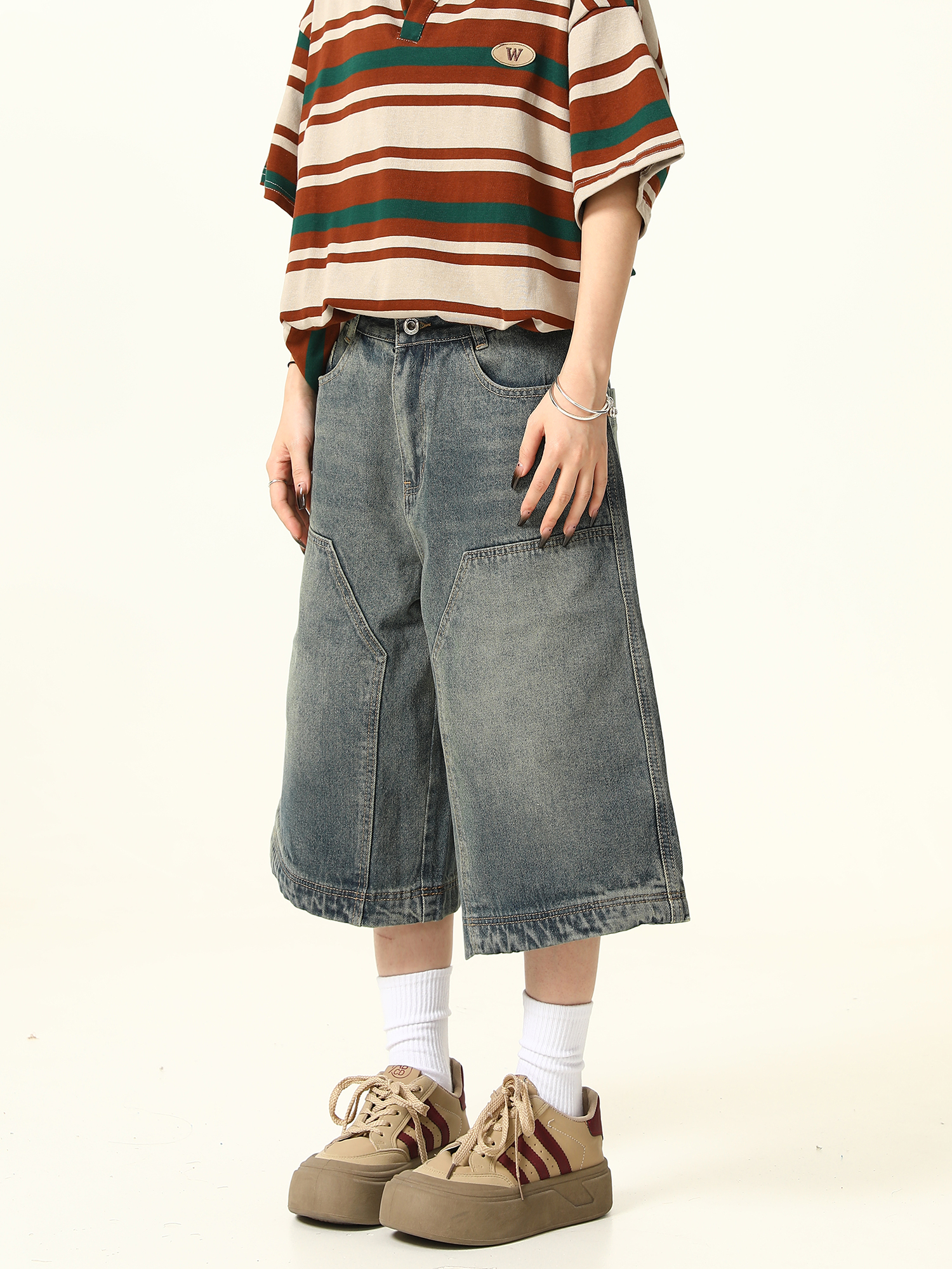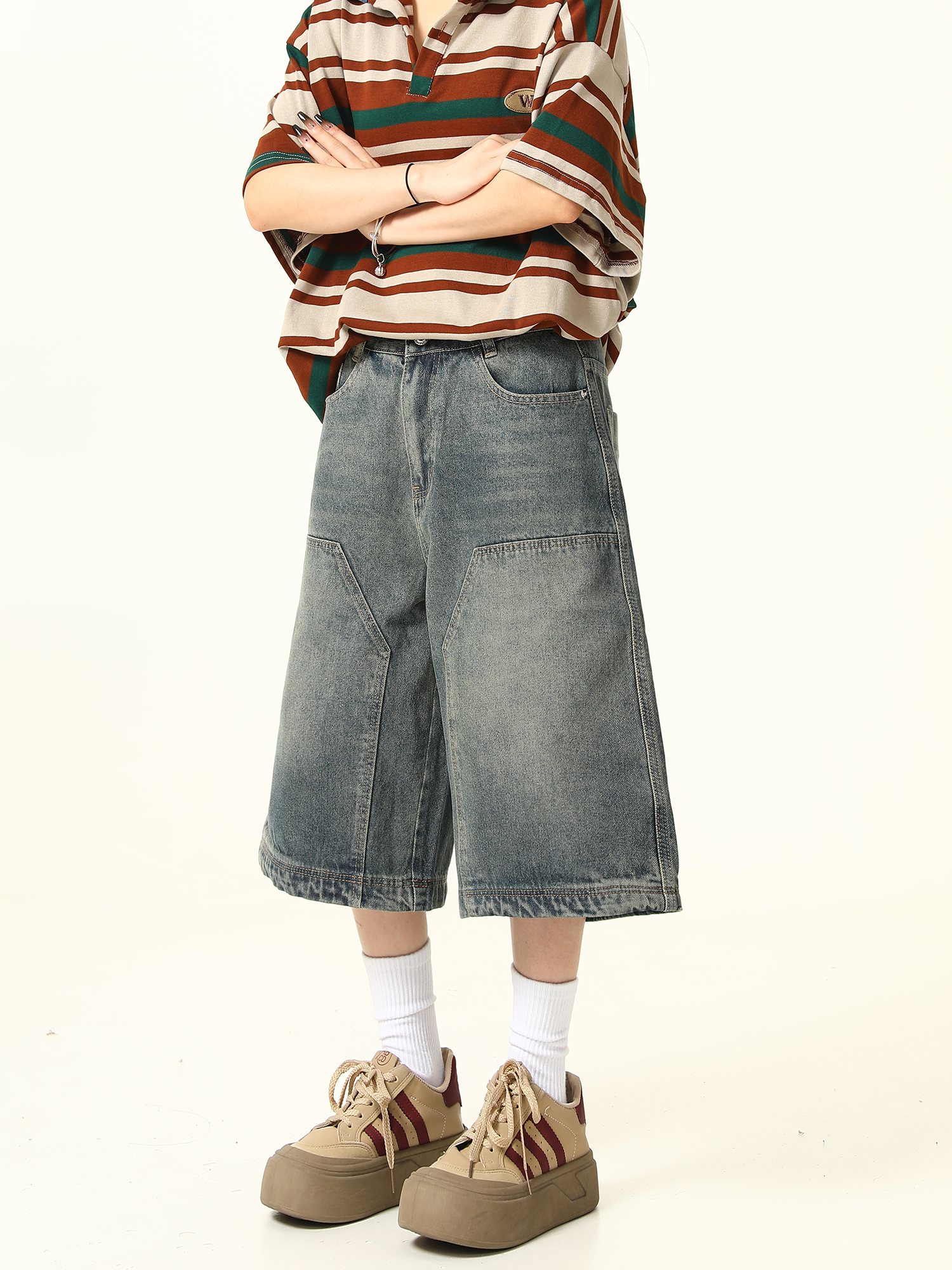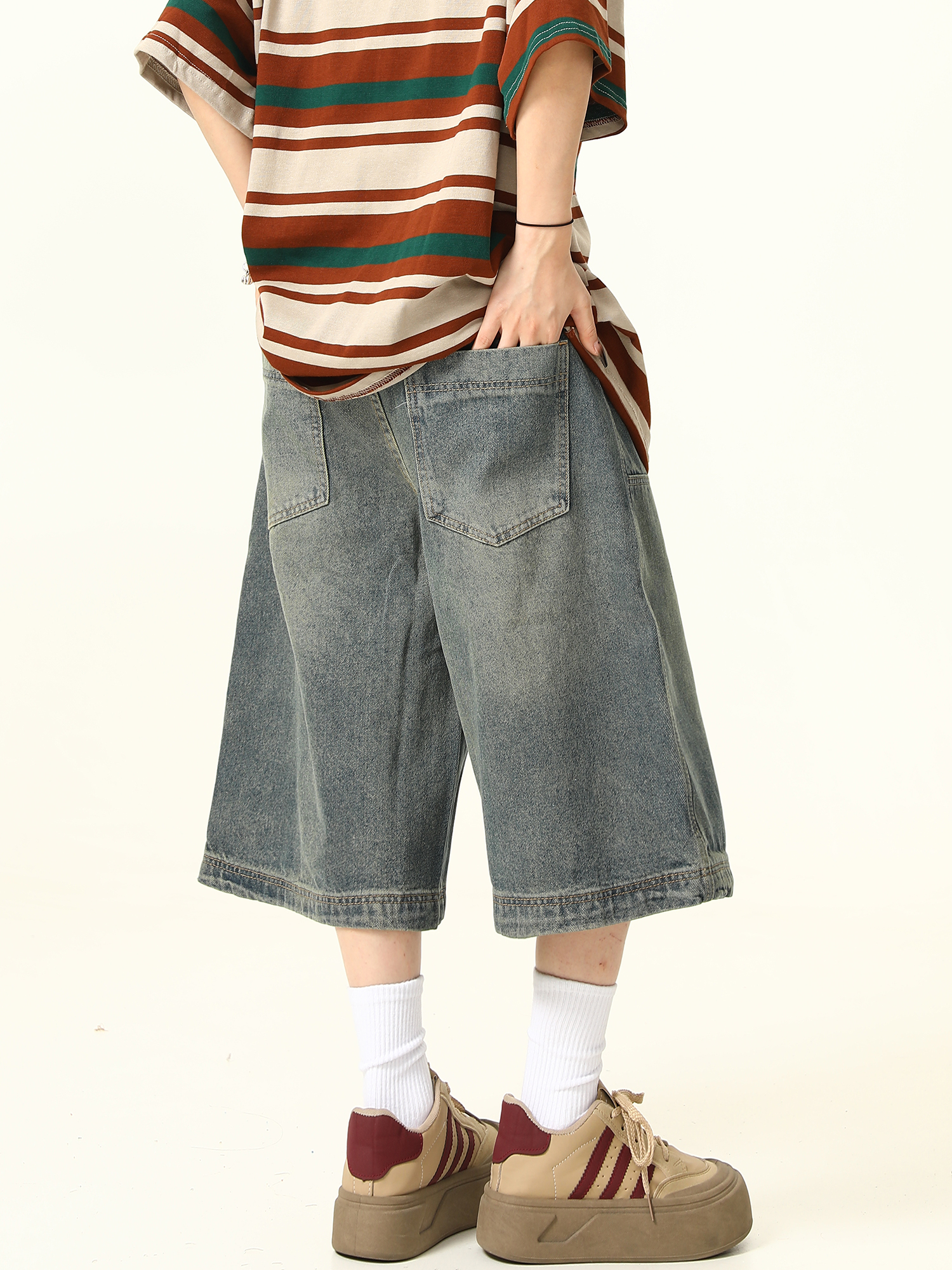 Unisex Retro Washed Denim Shorts: Trendy Fashion Outfits for Streetwear