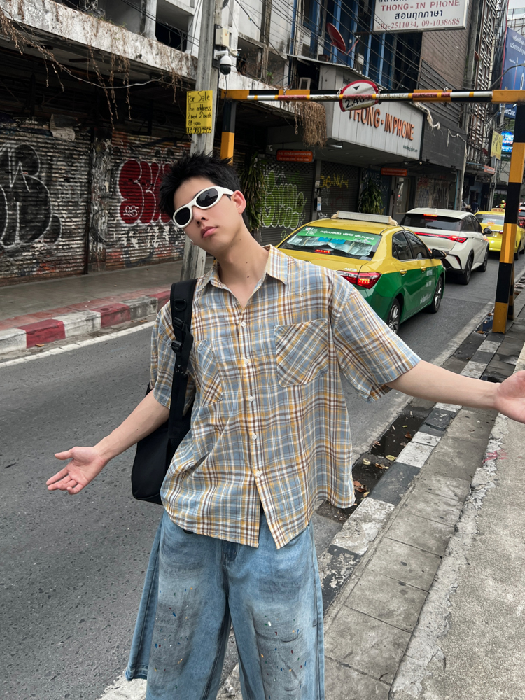 Unisex Brushed Plaid Short Sleeve Shirt for Effortless Summer Fits