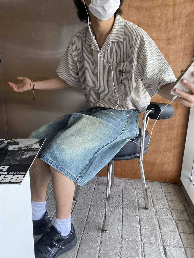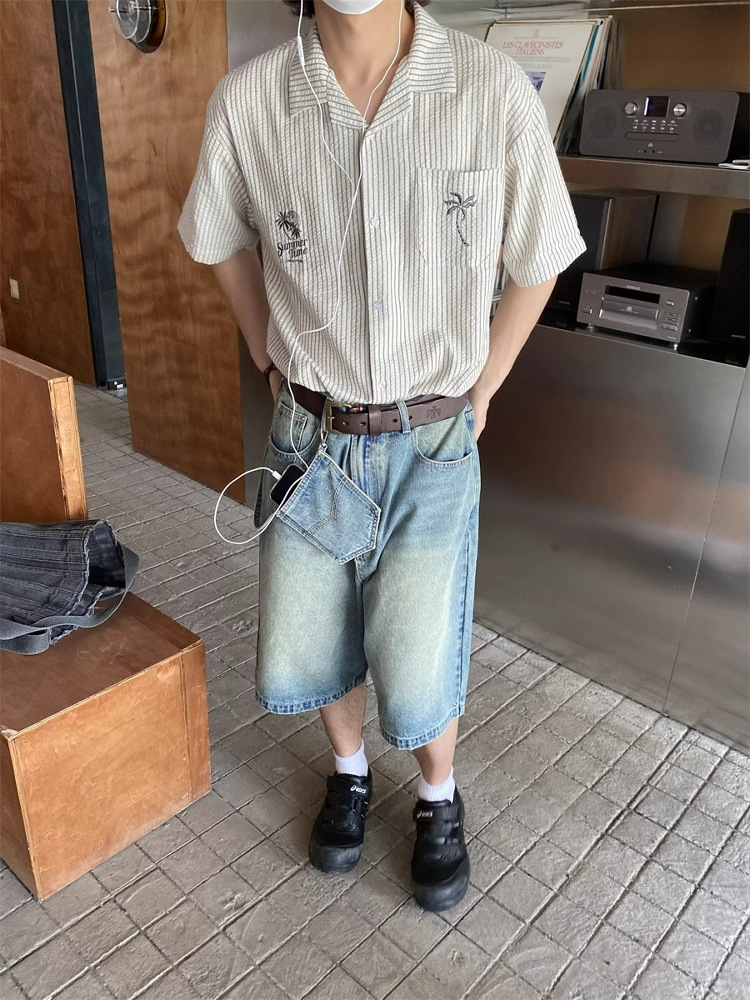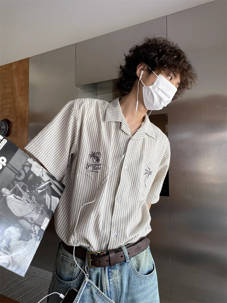 Unisex Cuban Collar Striped Short Sleeve Shirt Coconut Tree Embroidery Retro Hawaiian Beach Shirt High-quality product featuring holiday outfits, fall clothing trends 2025, 90s fashion and more. Modern design that fits the latest trends. Premium materials ensure durability and comfort. Order now for special offers! Product designed with attention to every detail. Suitable for all occasions and personal styles.
