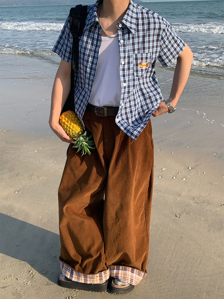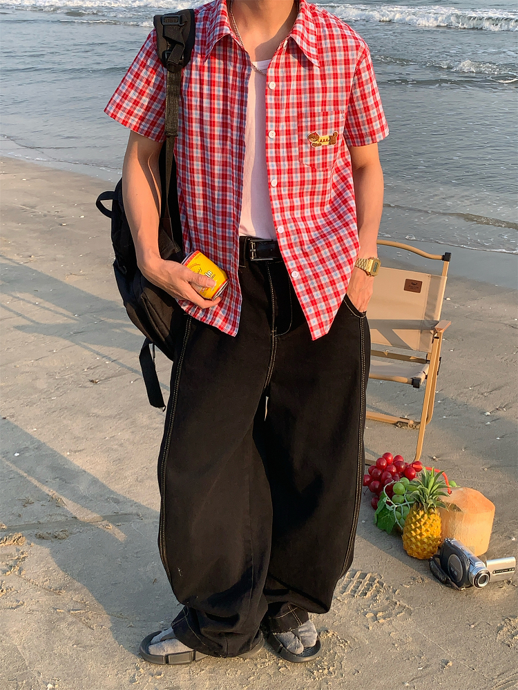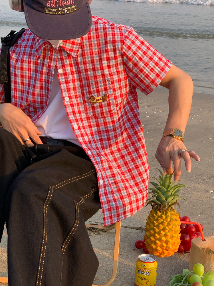 Unisex Slim Fit Dog Embroidery Short Sleeve Shirt Vintage Pla – Summer Fits