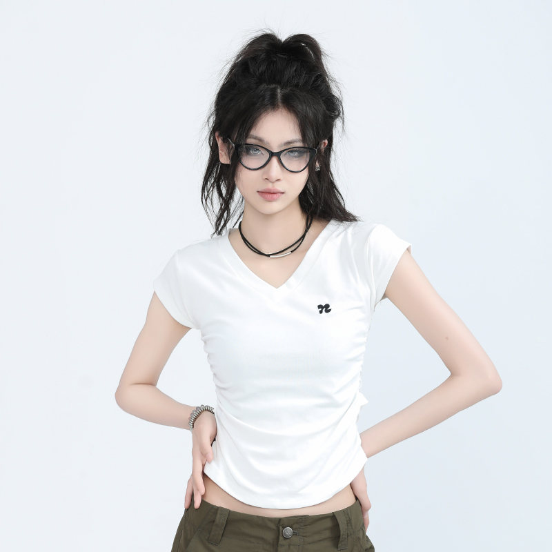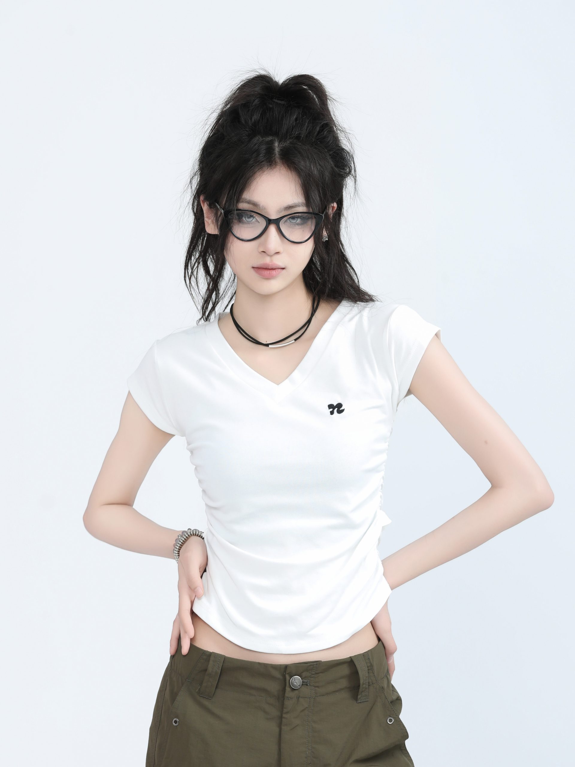 V- Neck Embroidered Fitted Short Sleeve Women Summer Top – Summer Fits