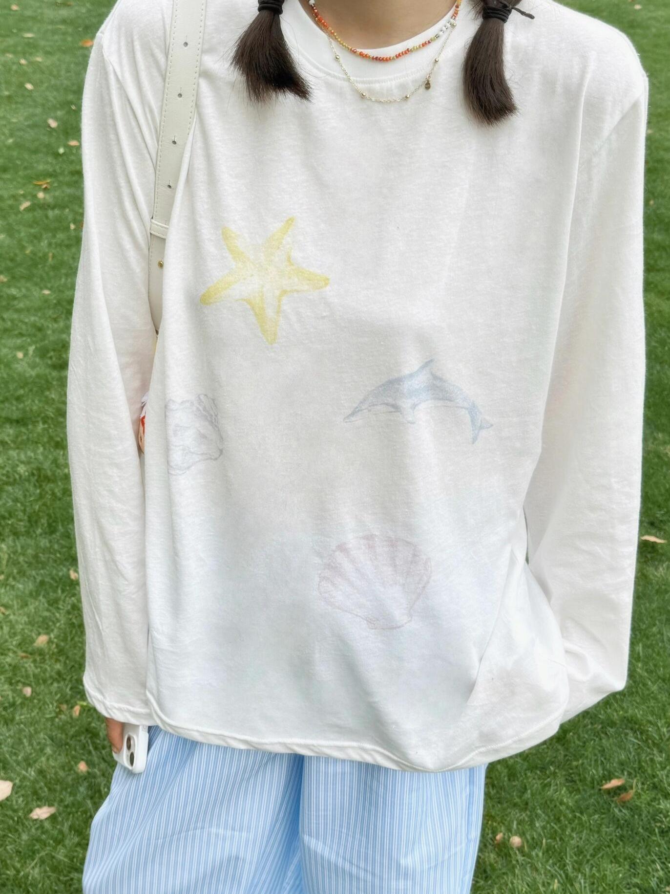 Long Sleeve Dolphin Cartoon Print for Easy Costumes Women – Sun Protection