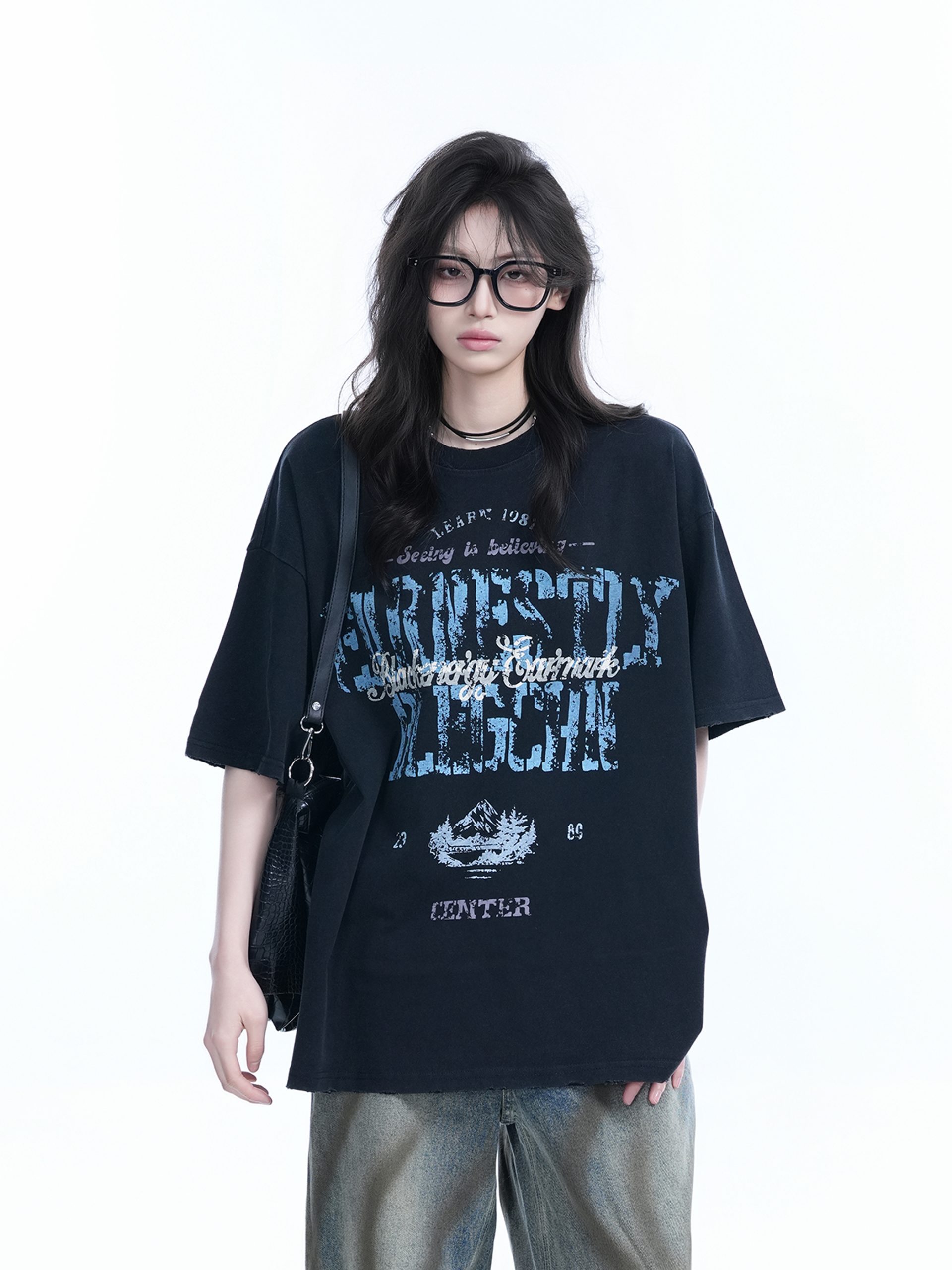 Elevate your casual wardrobe with our Vintage American-Style Distressed Loose Fit Short-Sleeve T-Shirt for Women. This Y2K fashion essential features a unique mottled print and a relaxed silhouette, offering both style and comfort for any occasion. Perfect for layering or wearing solo, it adds a touch of retro flair to your look while ensuring a comfortable fit all day long. Don’t miss out on this must-have piece add it to your cart today!