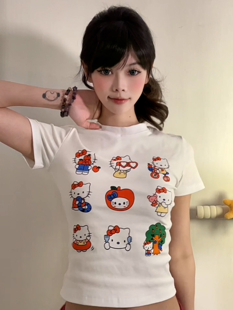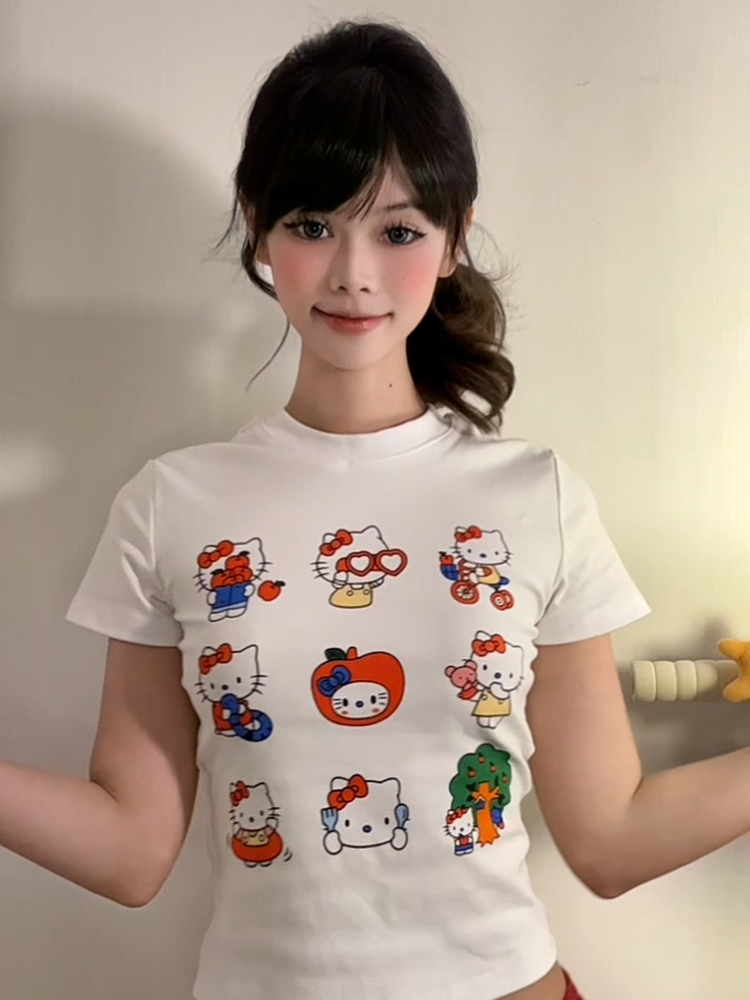 Vintage Summer Kitty Cat Print Short Sleeve Women Fitted Top Cute Neck Tee a Sweet, Cool Look High-quality product featuring fall fits, warm fall outfits, spring outfit and more. Modern design that fits the latest trends. Premium materials ensure durability and comfort. Order now for special offers! Product designed with attention to every detail. Suitable for all occasions and personal styles.