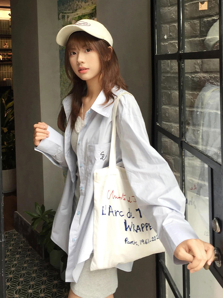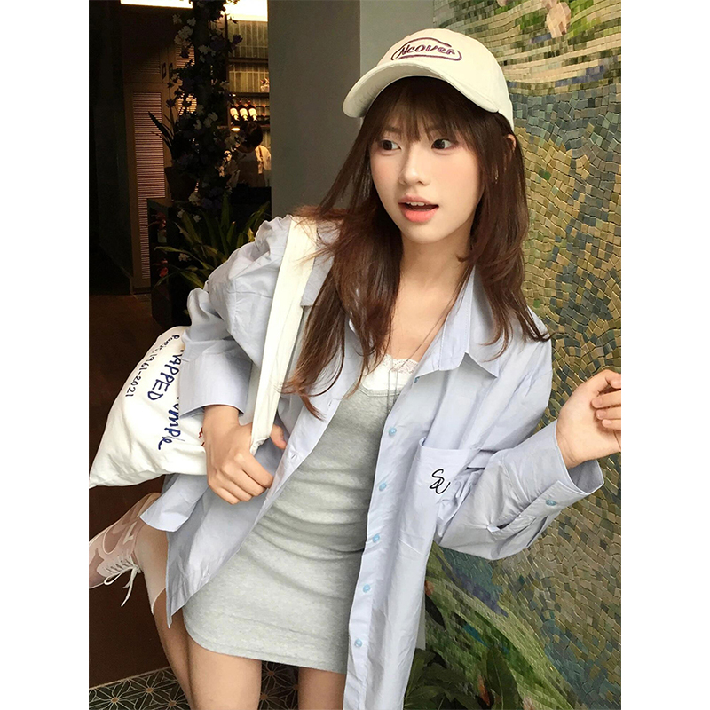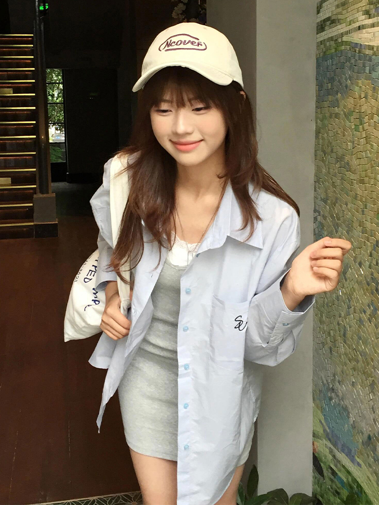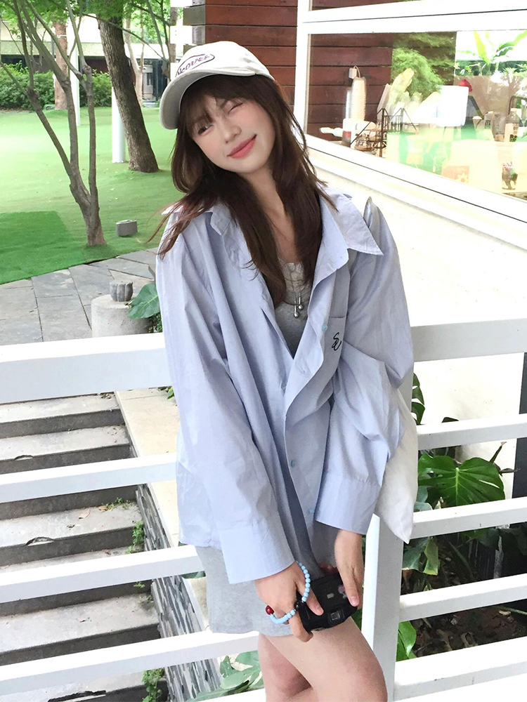 Vintage Blue Long Sleeve Shirt Jacket Women Summer Sun Protection Casual Loose Mid Length Top High-quality product featuring casual summer outfits, spring outfit, vacation outfits and more. Modern design that fits the latest trends. Premium materials ensure durability and comfort. Order now for special offers! Product designed with attention to every detail. Suitable for all occasions and personal styles.