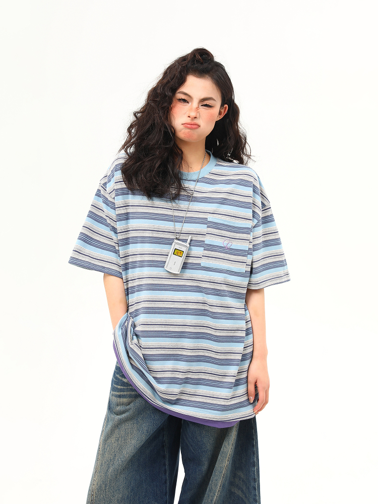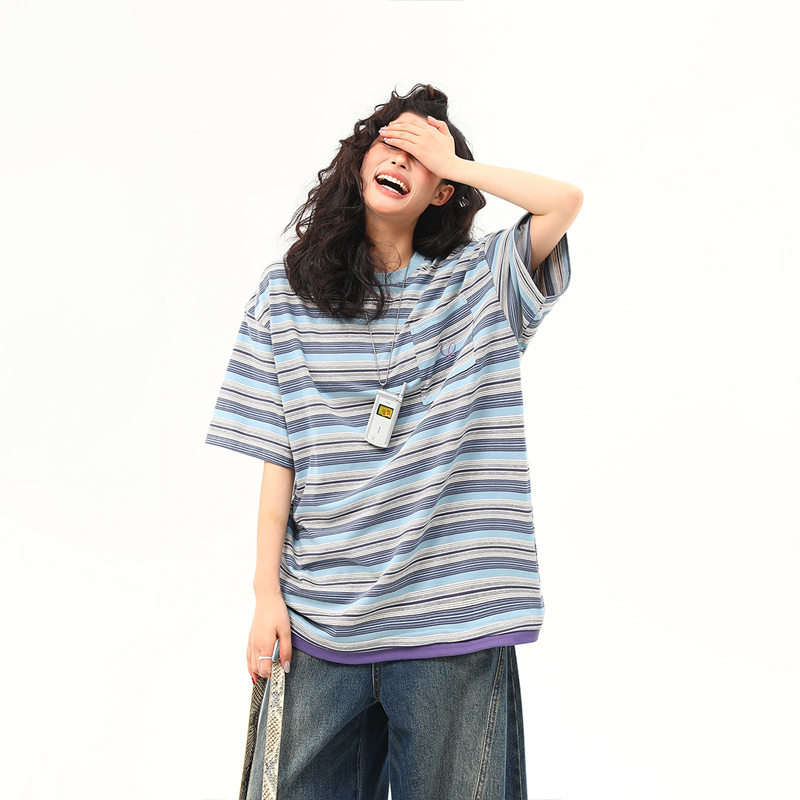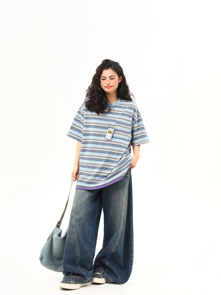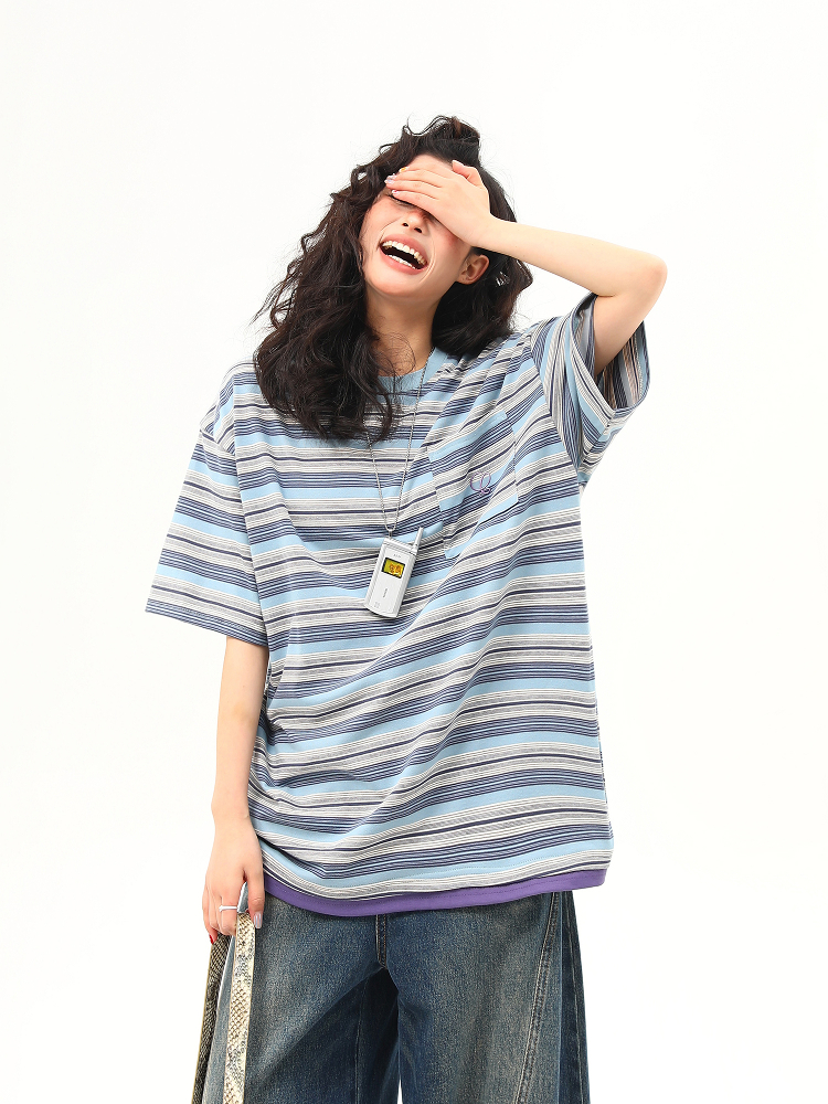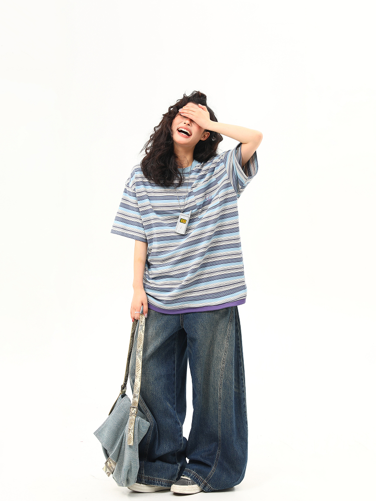 Vintage Blue Striped Loose Fit Top Ideal for Stylish Summer Fits