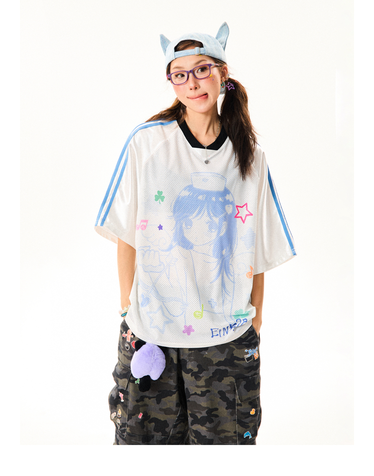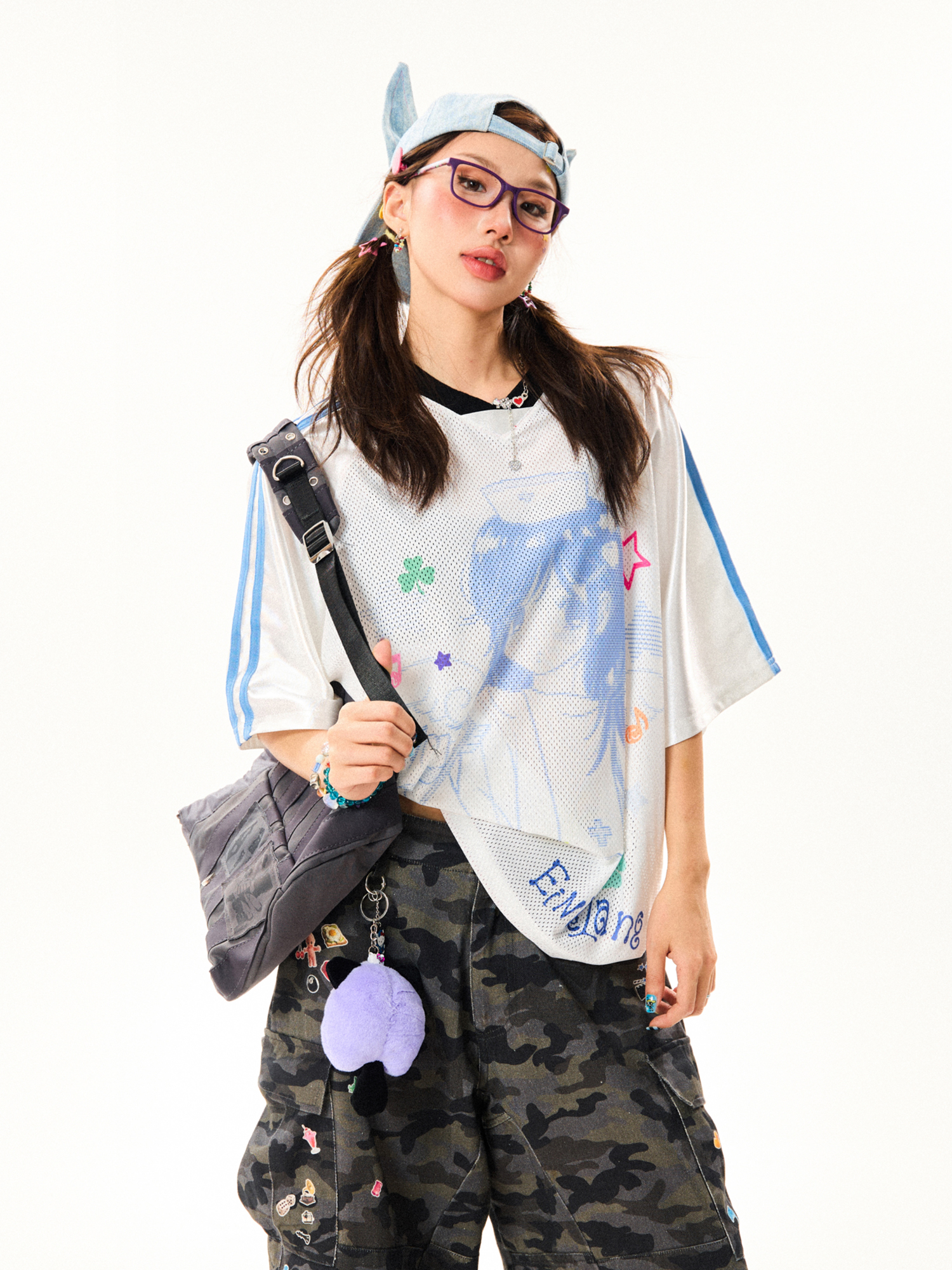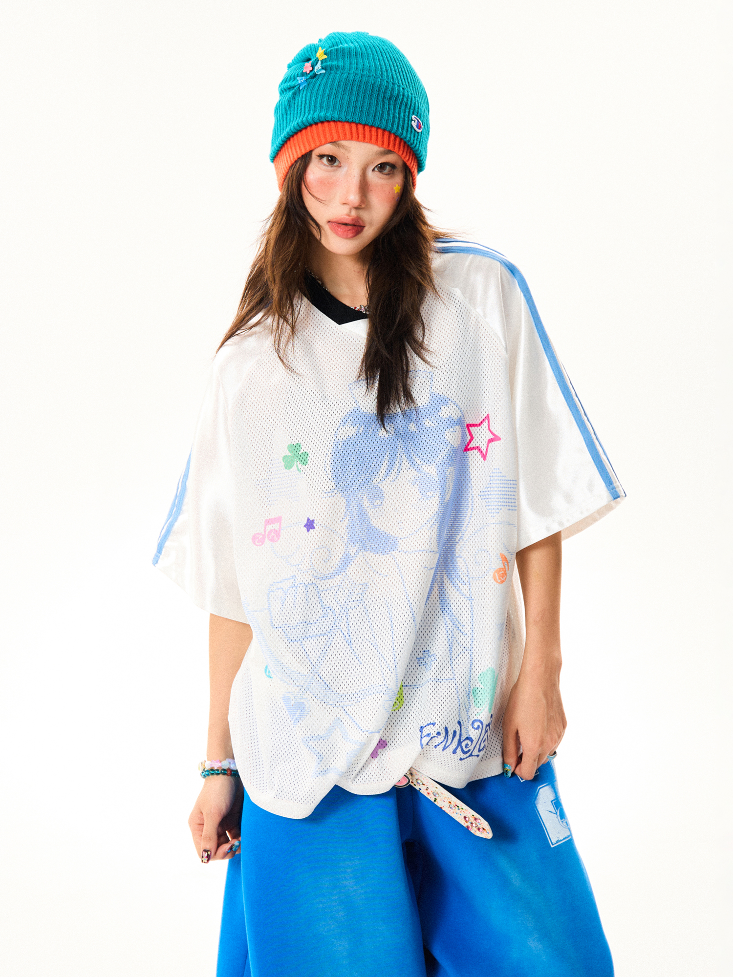 This arrived quickly and the first thing I noticed was— a simple design that fits any outfit, Small touch, big difference. Glad I picked Vintage Cartoon Girl Loose Fit V-neck Jersey: Perfect Summer Fits for Women up.