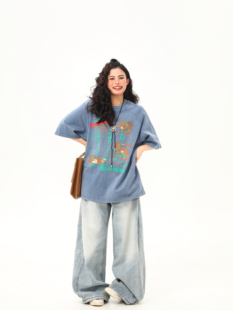 Elevate your casual wardrobe with our Vintage Distressed Printed Short Sleeve T-Shirt, designed for both men and women. This loose-fit couple tee showcases a retro American style that perfectly blends comfort and fashion, making it an essential piece for any laid-back outing. Crafted for effortless versatility, its unique distressed print adds character while ensuring you stand out. Don’t miss the chance to express your style add this must-have tee to your cart today!
