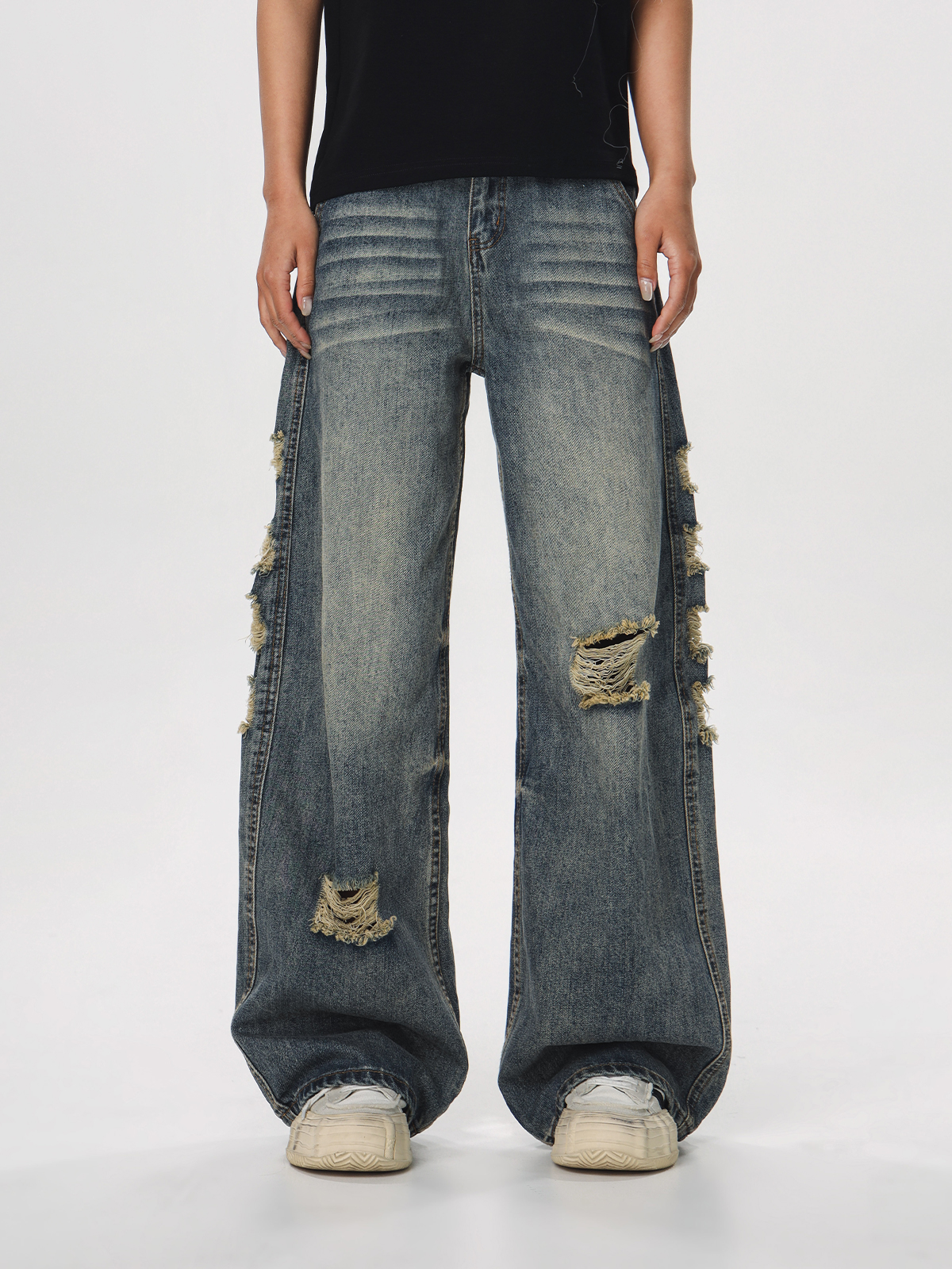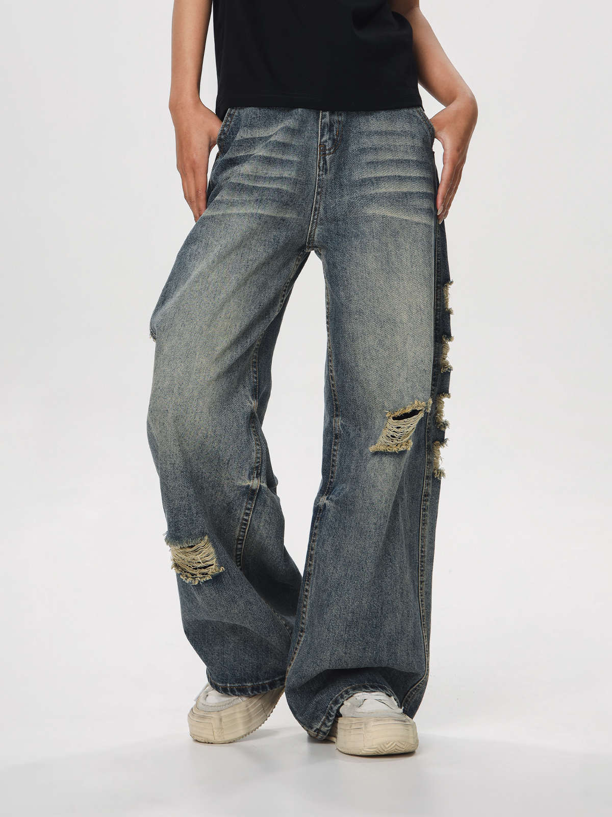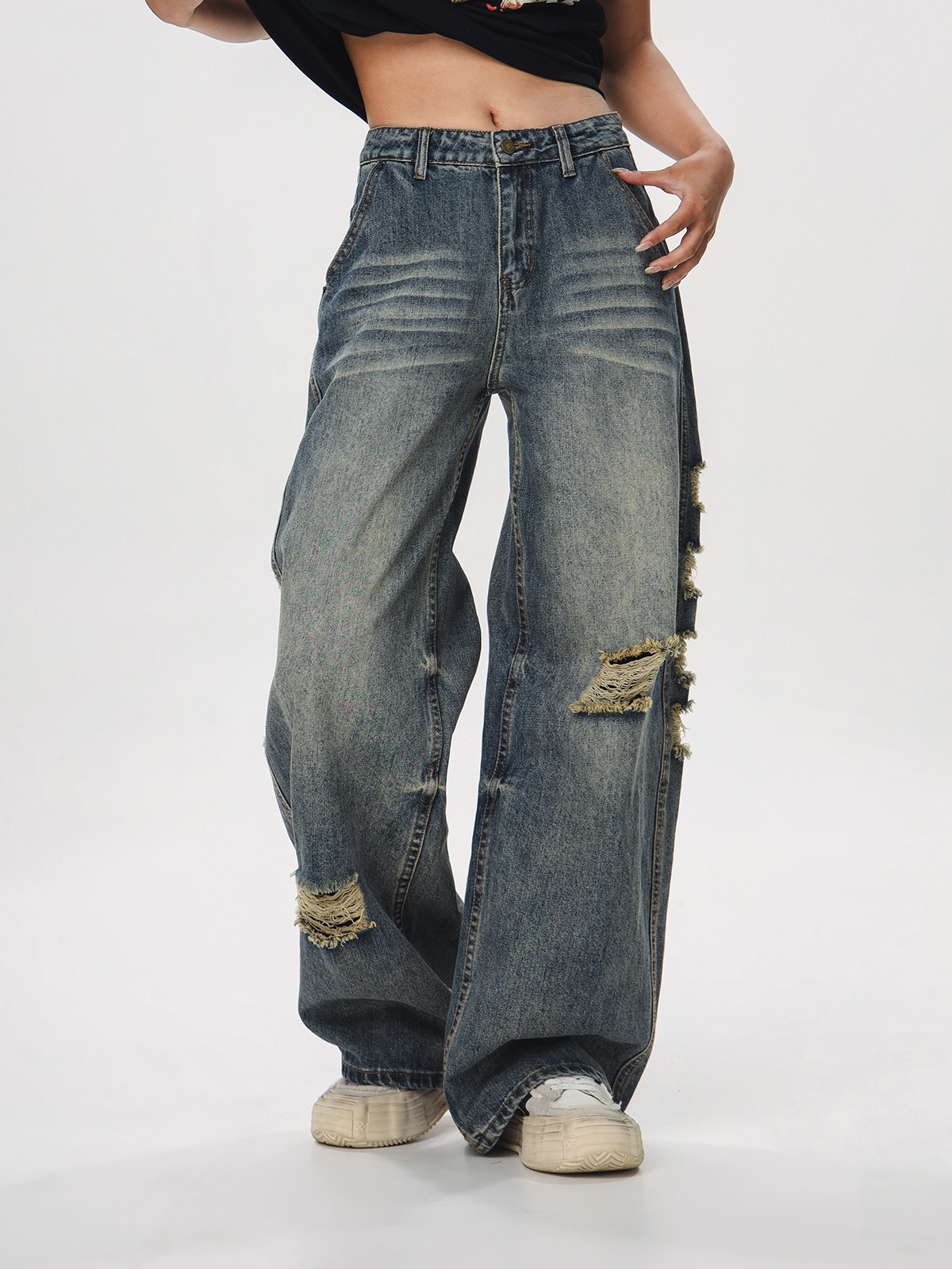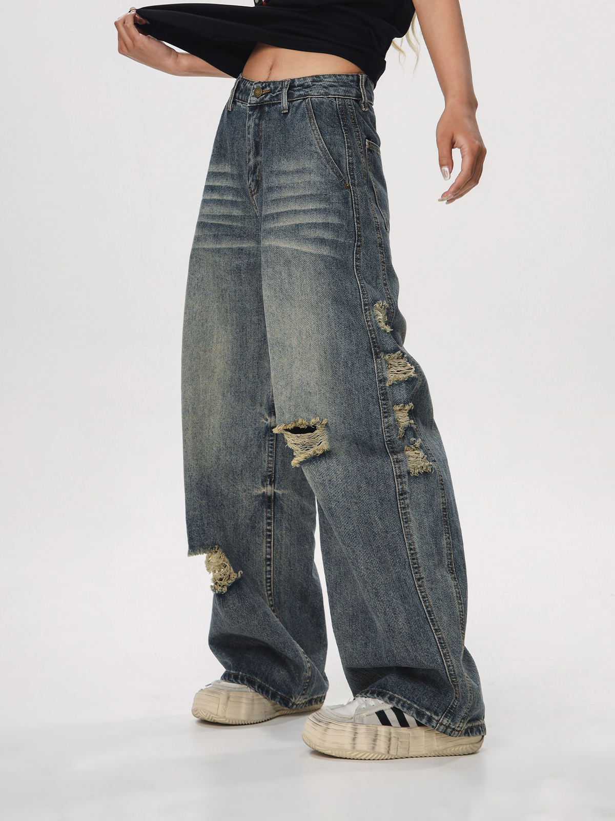 Step into effortless style with our Vintage Distressed Ripped Jeans for Women, featuring a loose straight leg and flared silhouette that embodies the laid-back charm of 90s American fashion. Crafted for comfort and breathability, these jeans offer a relaxed fit that flatters every body type while showcasing trendy ripped details for a touch of edginess. Perfect for casual outings or relaxed weekends, these versatile pants can be easily paired with your favorite tees or sweaters. Don’t miss out on this timeless wardrobe staple add to your cart today!