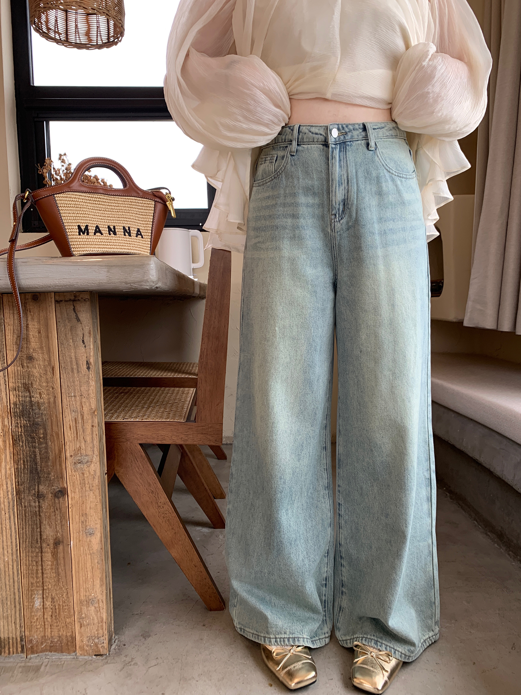 Vintage Water Washed Blue High Waisted Loose Straig – Western Outfits Women