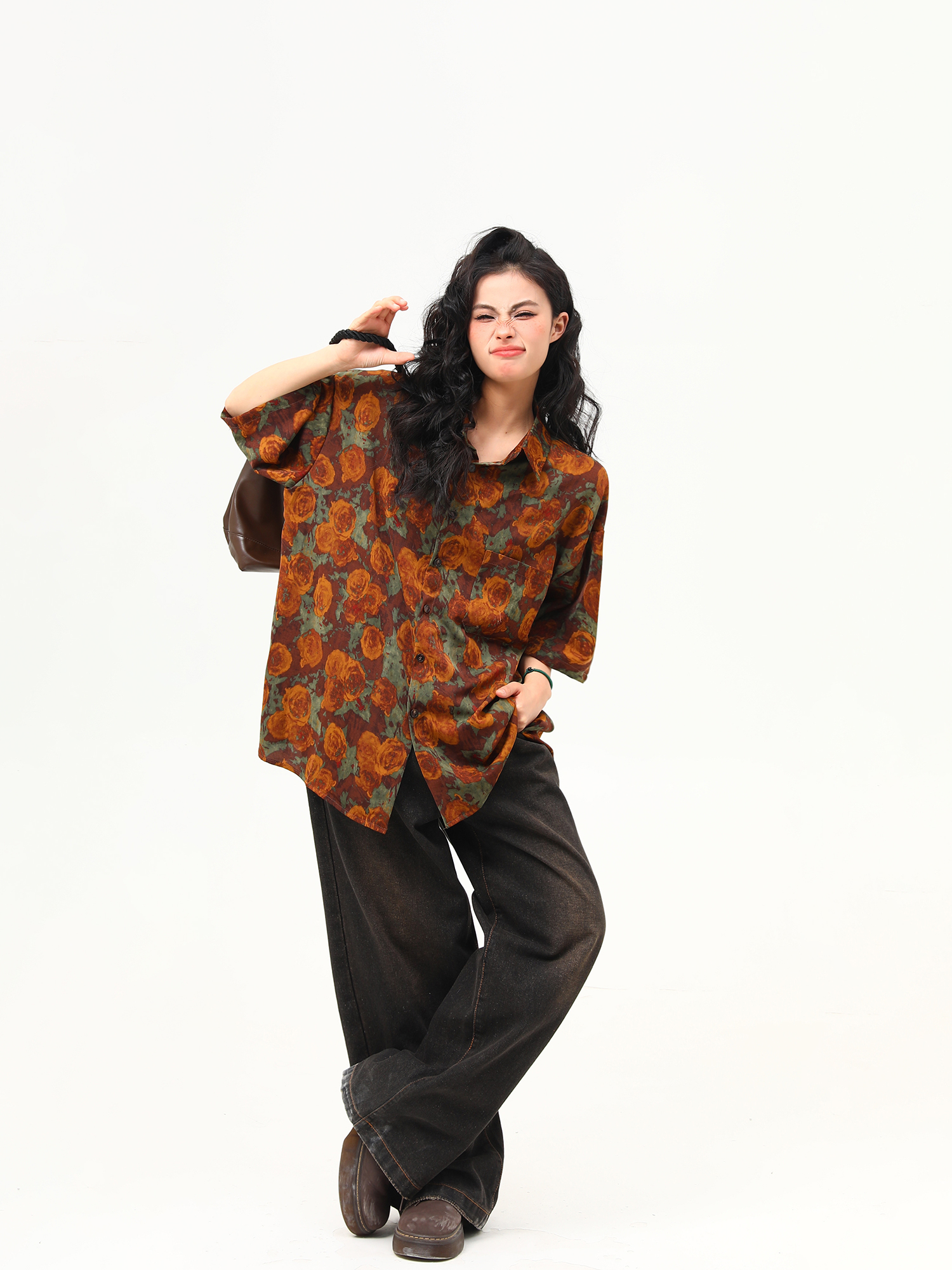 Vintage Floral Short Sleeve Shirt Women Retro Loose Fit Summer Top, pired High-quality product featuring spring outfit, spring outfits, casual summer outfits and more. Modern design that fits the latest trends. Premium materials ensure durability and comfort. Order now for special offers! Product designed with attention to every detail. Suitable for all occasions and personal styles.