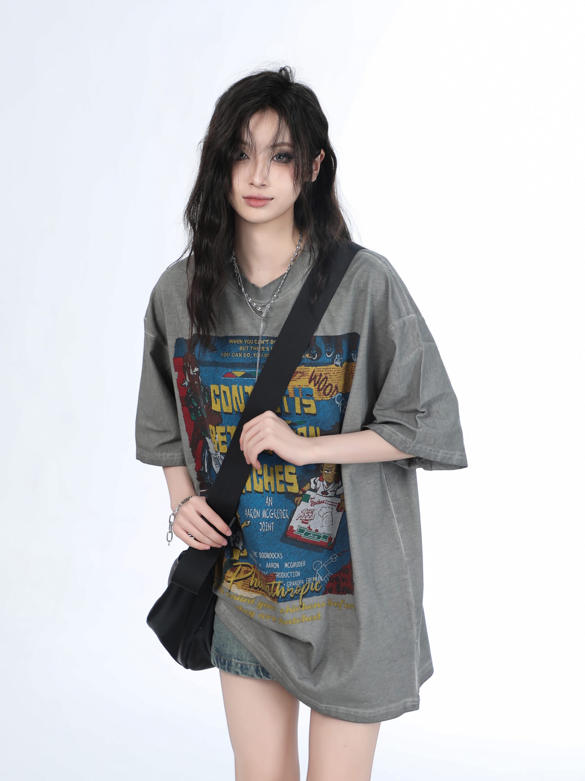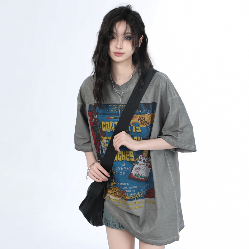 Vintage Gray Heavy Duty Short Sleeve Women Loose Fit Summer T – Summer Fits