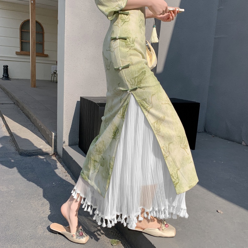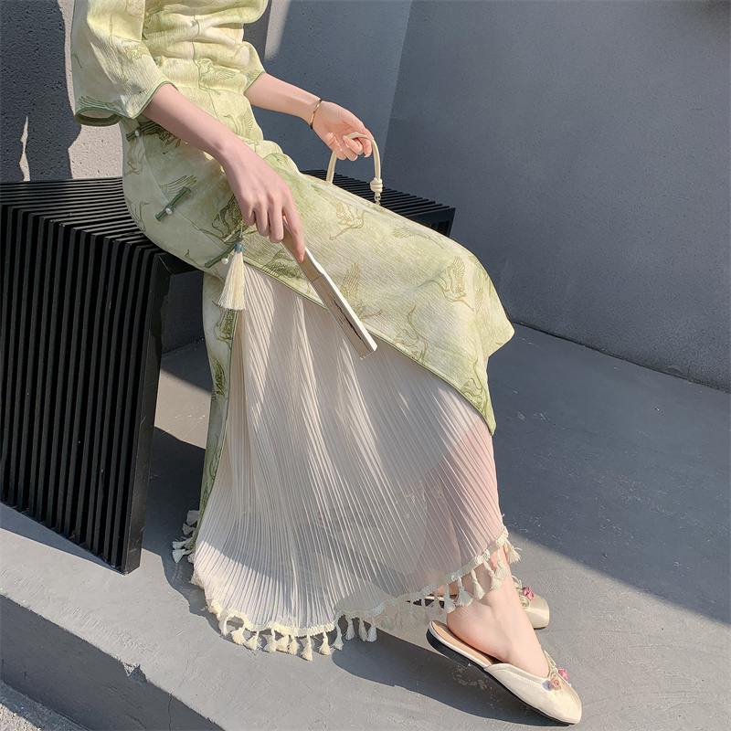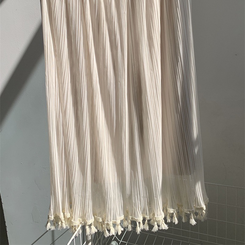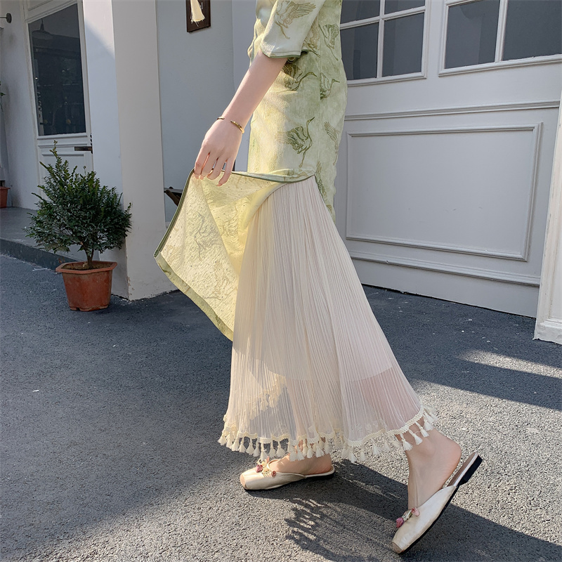 Vintage Inner Slip Dress Mesh Pleated Tassel Skirt, Elastic – Skirt Outfits