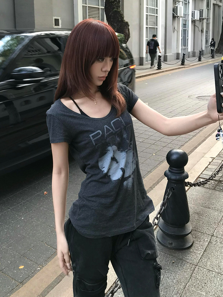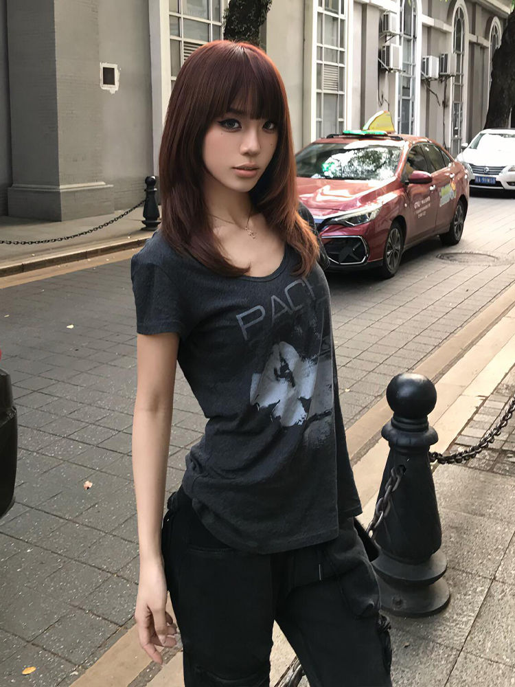 Elevate your summer wardrobe with our Vintage-Inspired Big Collar T-Shirt for Women, featuring an eye-catching portrait print that adds a touch of artistic flair. This trendy gray top boasts short sleeves and a loose fit, ensuring ultimate comfort while keeping you stylish on the high street. Perfect for pairing with shorts or jeans, it’s a versatile piece that transitions effortlessly from casual outings to chic gatherings. Don’t miss out on this must-have summer essential add it to your cart today!
