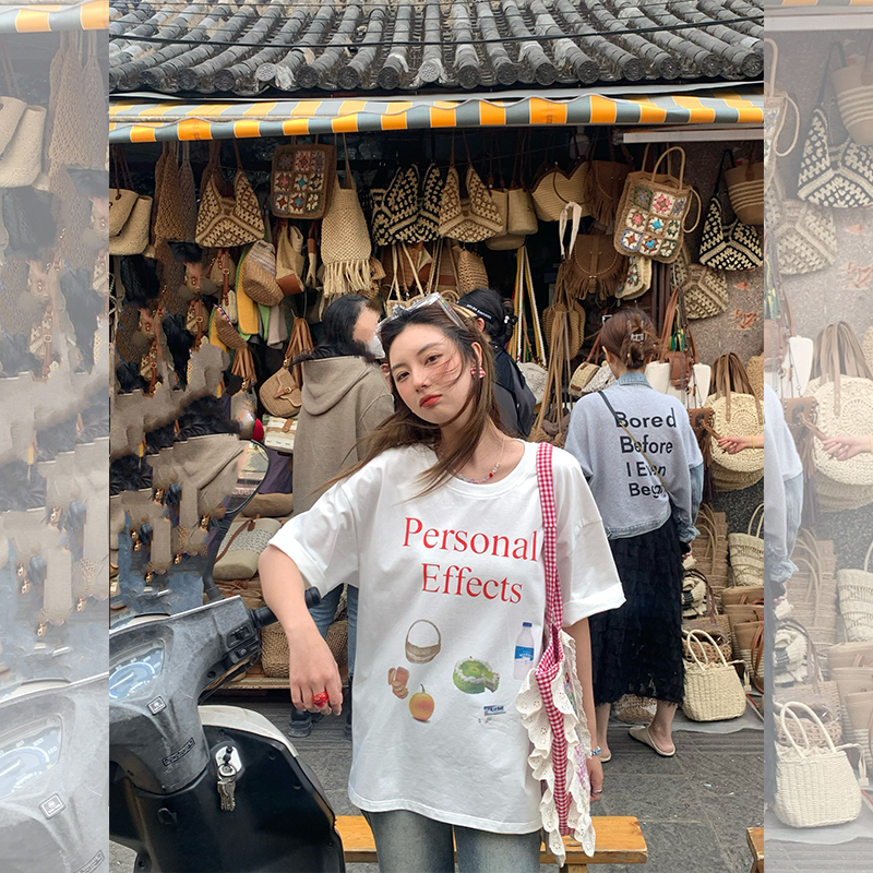 Vintage Love Y2k Outfits: Retro Short Sleeve Printed Top for Summer