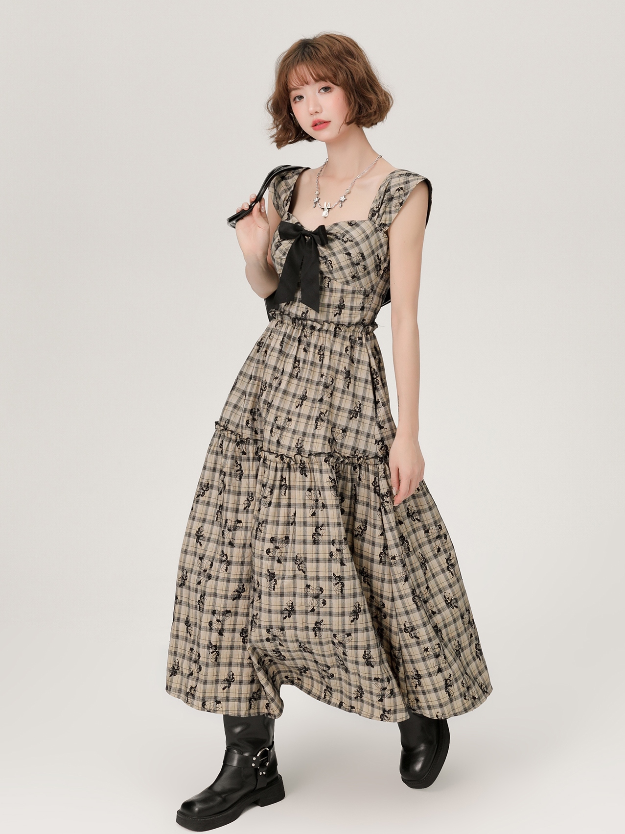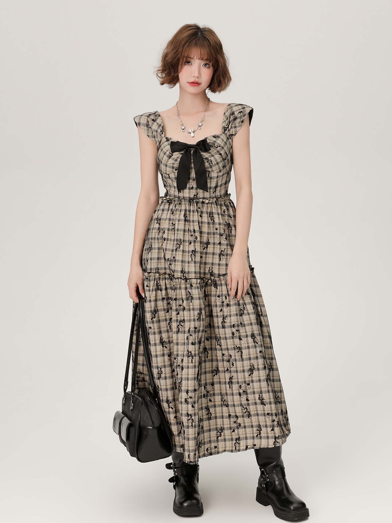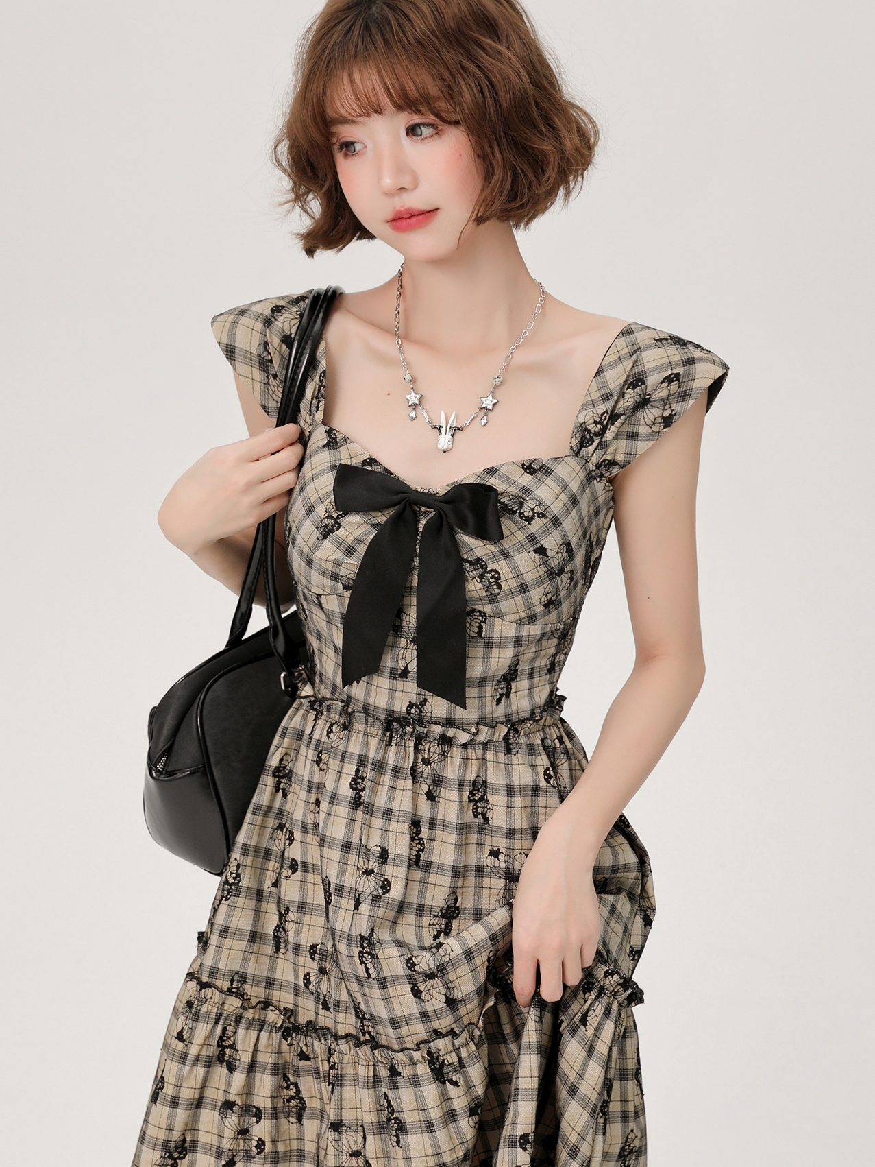 Vintage Plaid A-line Hoco Dresses for Women with Butterfly Embroidery