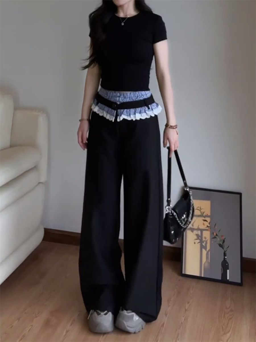 Vintage Plaid Patchwork Lace Suit Pants Women Loose Straight Leg Wide Leg Spring, Autumn High-quality product featuring spring outfits, fall fits, fall fashion and more. Modern design that fits the latest trends. Premium materials ensure durability and comfort. Order now for special offers! Product designed with attention to every detail. Suitable for all occasions and personal styles.