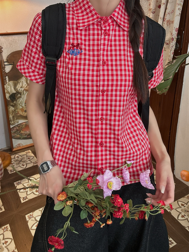 Vintage Red Plaid Short Sleeve Shirt Summer Slim Fit Casual Top, Y2K pired Outfits High-quality product featuring summer fits, fall fits, 90s fashion and more. Modern design that fits the latest trends. Premium materials ensure durability and comfort. Order now for special offers! Product designed with attention to every detail. Suitable for all occasions and personal styles.