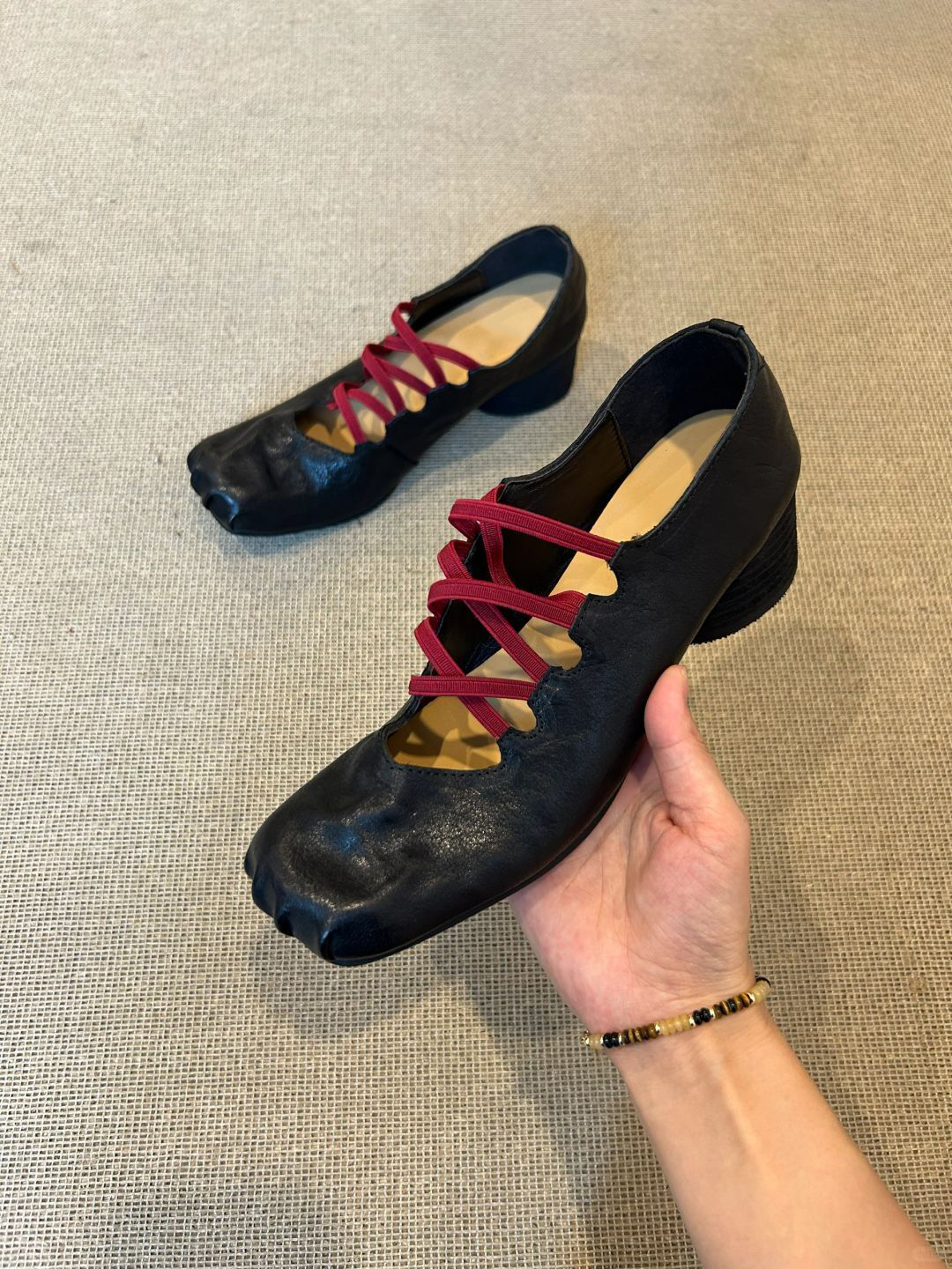 Step out in style with our Vintage Sheepskin Pleated Square-Toe Cross-Strap High-Heeled Ballet Mary Jane Shoes, featuring a chic chunky heel and unique pig-nose design. These elegant shoes offer a perfect fit and exceptional comfort, making them the ideal choice for both casual outings and special occasions. Elevate your wardrobe and make a statement with these timeless pieces don’t miss out, add them to your cart today!