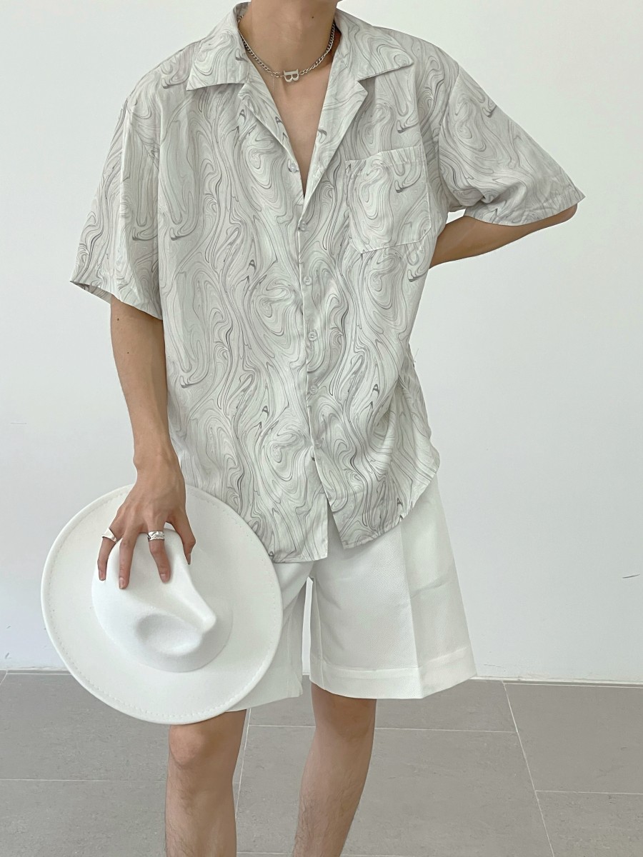 Vintage Wave Pattern Ice Silk Short Sleeve Shirt Men, Loose Casual Cuban Collar Beach Shirt Summer High-quality product featuring casual summer outfits, vacation outfits, winter fits and more. Modern design that fits the latest trends. Premium materials ensure durability and comfort. Order now for special offers! Product designed with attention to every detail. Suitable for all occasions and personal styles.