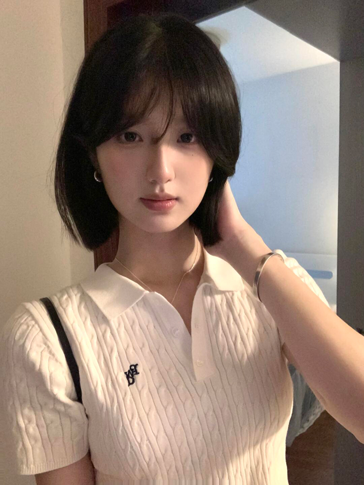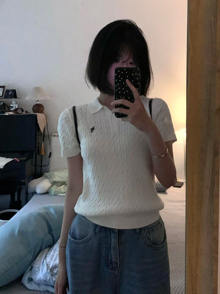 Vintage White Cropped Polo Collar Twisted Floral Short Sleeve – Summer Fits