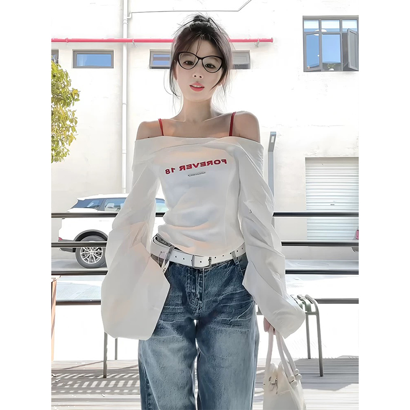 White One Shoulder Long Sleeve Shirt Women Off Shoulder Top Spring Autumn High-quality product featuring spring outfits, spring outfit, fall fashion and more. Modern design that fits the latest trends. Premium materials ensure durability and comfort. Order now for special offers! Product designed with attention to every detail. Suitable for all occasions and personal styles.