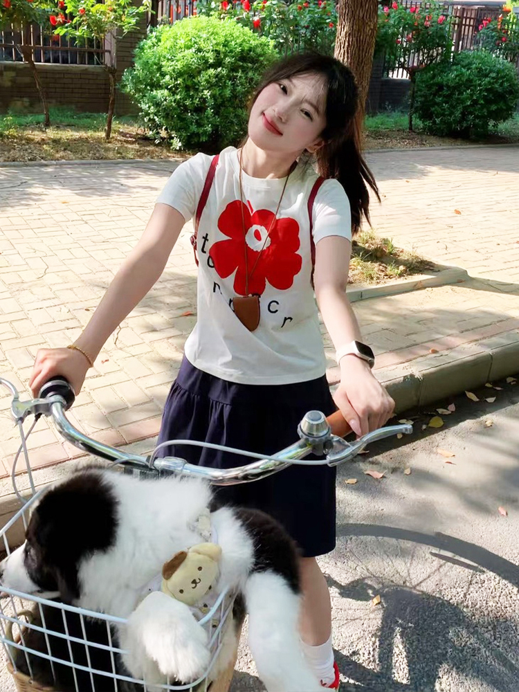 Red Floral Letter Print Short Sleeve Top: Chic Summer Fits for Women