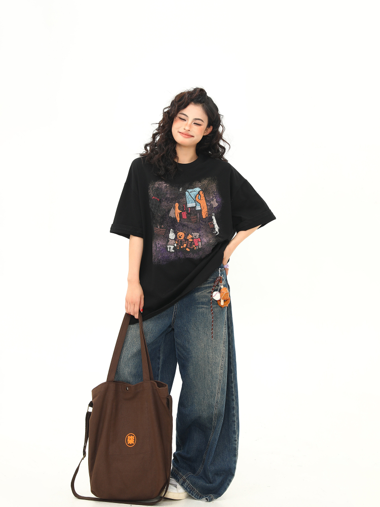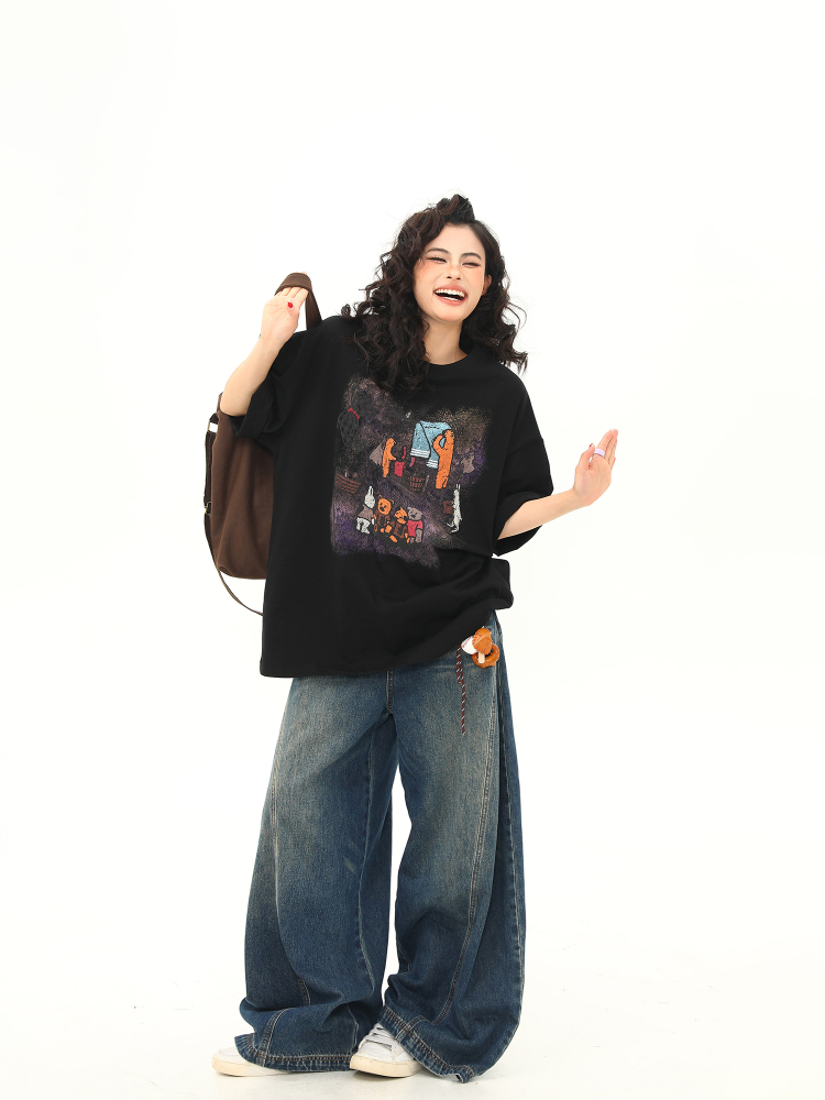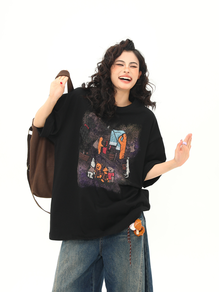 Wild A Zi Short Sleeve Women Vintage Cartoon Print Casual Loose Fit Neck Top High-quality product featuring fall outfits women, simple halloween costume, fall fits and more. Modern design that fits the latest trends. Premium materials ensure durability and comfort. Order now for special offers! Product designed with attention to every detail. Suitable for all occasions and personal styles.