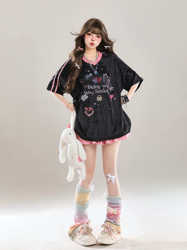 Elevate your summer wardrobe with our Women’s American-Style Printed V-Neck Short Sleeve T-Shirt, designed for effortless style and comfort. This sweet girl loose fit tee features a trendy jersey design that effortlessly pairs with your favorite shorts or jeans, making it perfect for sunny outings or casual hangouts. Embrace the laid-back vibe and enjoy the breathable fabric that keeps you cool all season long. Don’t miss out on this essential piece add it to your cart today!