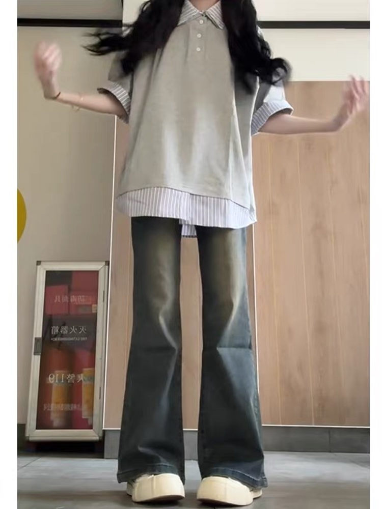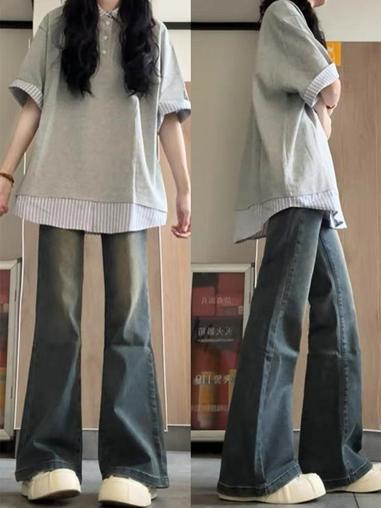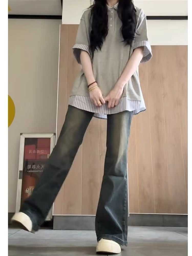 Women College Patchwork Striped Faux Two Polo Collar Short Sleeve Gray Summer Top High-quality product featuring casual summer outfits, fall outfits women, college halloween costume ideas and more. Modern design that fits the latest trends. Premium materials ensure durability and comfort. Order now for special offers! Product designed with attention to every detail. Suitable for all occasions and personal styles.