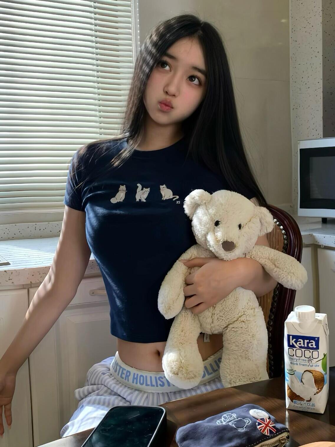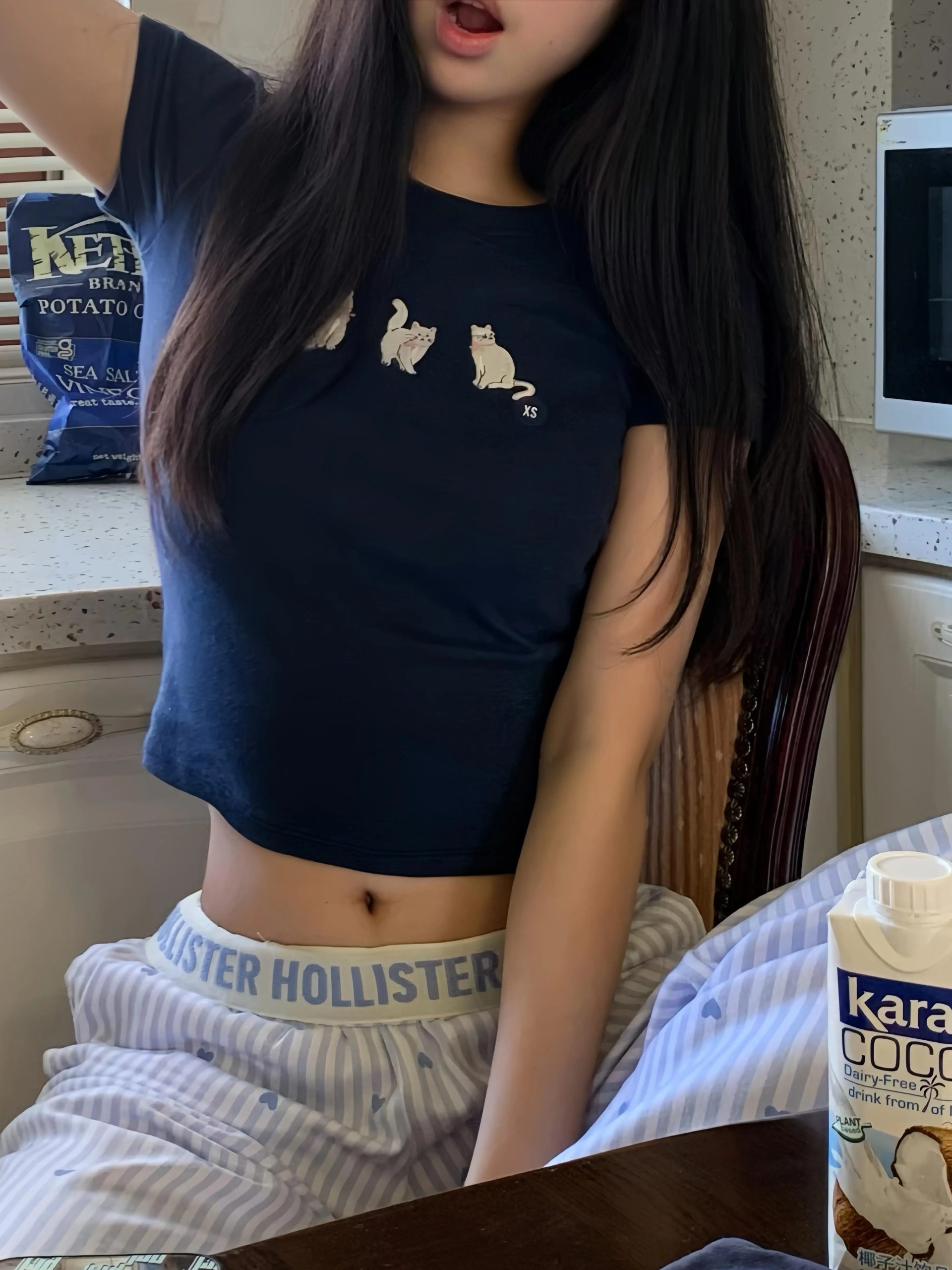 Cute Cat Cartoon Short Sleeve: Easy Costumes Women in Slim Pure Cotton