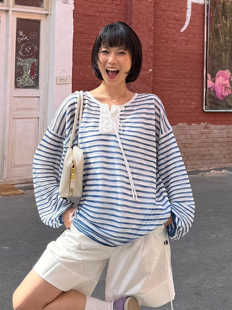 Women Striped Long Sleeve Ummer Lazy Sun Protection C – Easy Costumes Women