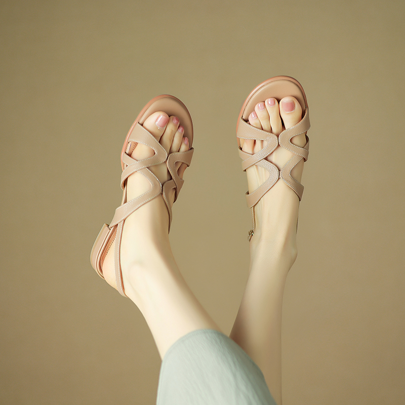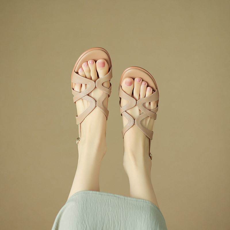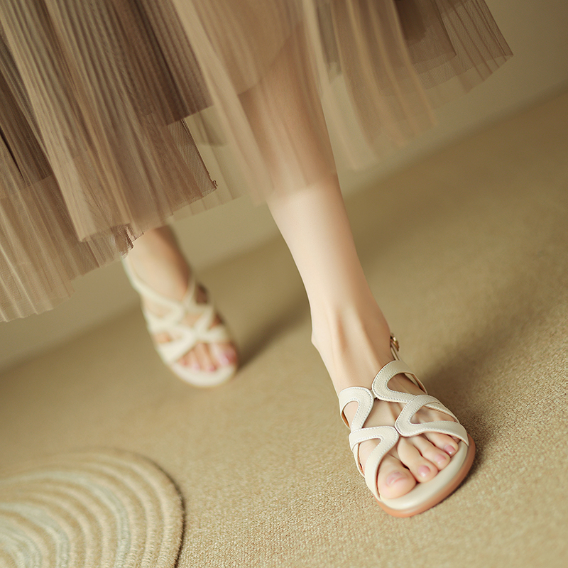 Genuine Leather Open Toe Sals: Stylish Summer Fits for Women’s Low Heels