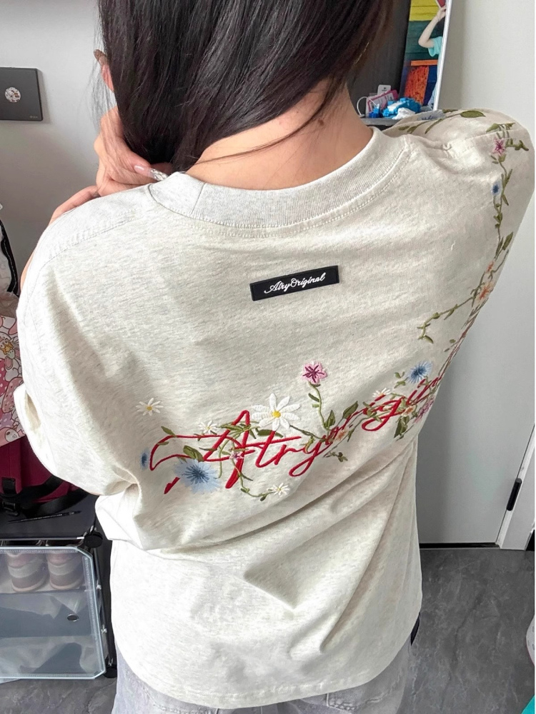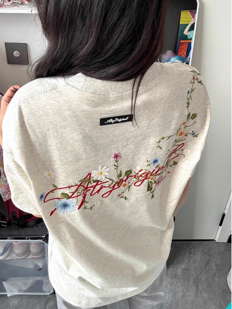 Women Gray Floral Embroidered Summer Short Sleeve Heavyweight Cotton Top High-quality product featuring spring outfit, work outfits women, fall outfits women and more. Modern design that fits the latest trends. Premium materials ensure durability and comfort. Order now for special offers! Product designed with attention to every detail. Suitable for all occasions and personal styles.