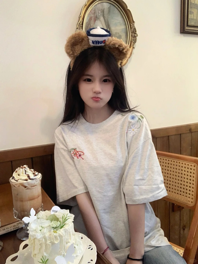 Elevate your summer wardrobe with our Women’s Gray Floral Embroidered High Street T-Shirt, crafted from heavyweight cotton for a comfortable yet stylish fit. This trendy short sleeve top features exquisite floral embroidery that adds a touch of charm to your casual look, making it perfect for any occasion. With its relaxed silhouette and American style, this T-shirt is designed to keep you feeling confident and chic all day long. Don’t miss out on this must-have staple add to your cart now and embrace effortless fashion!