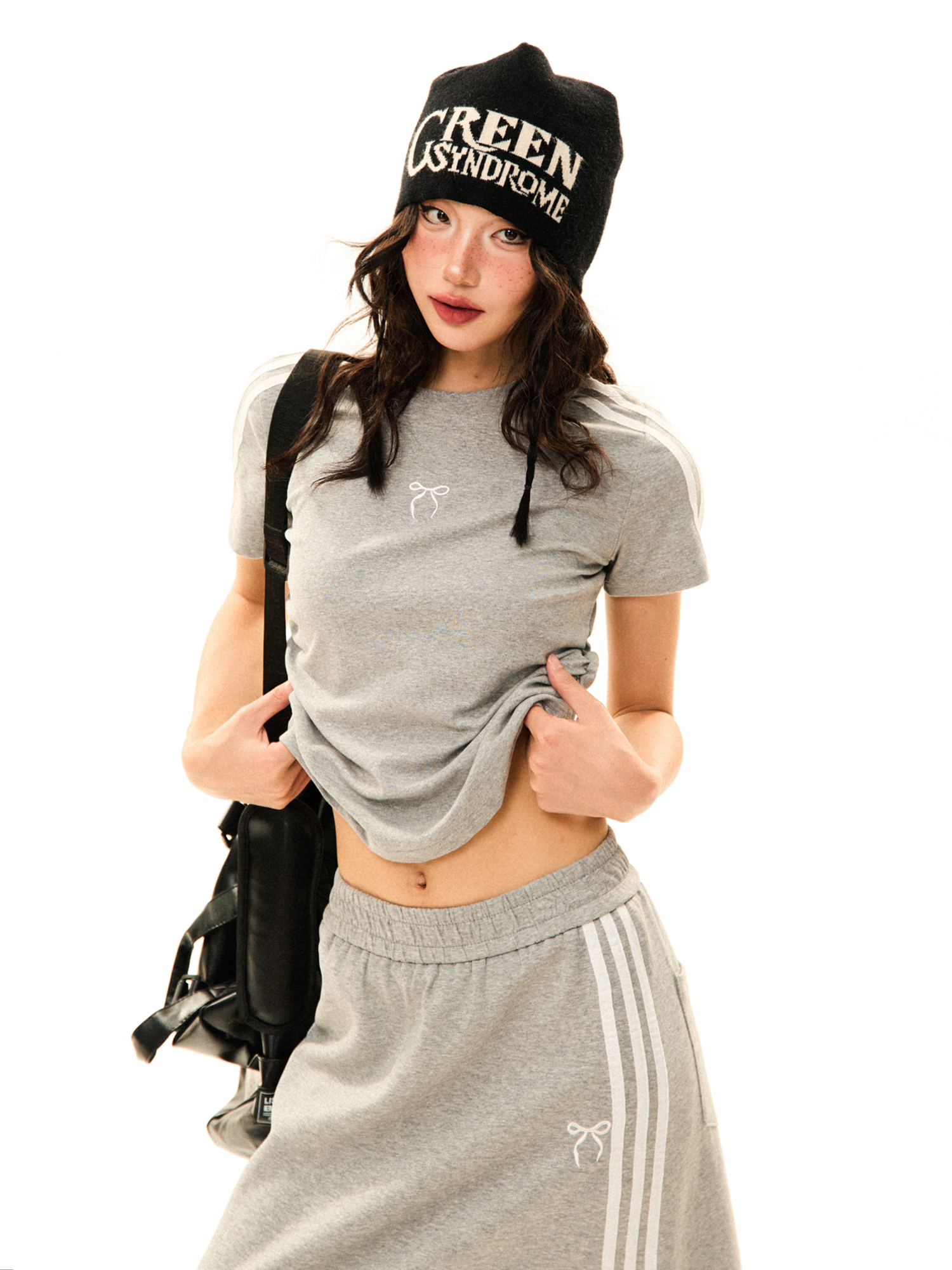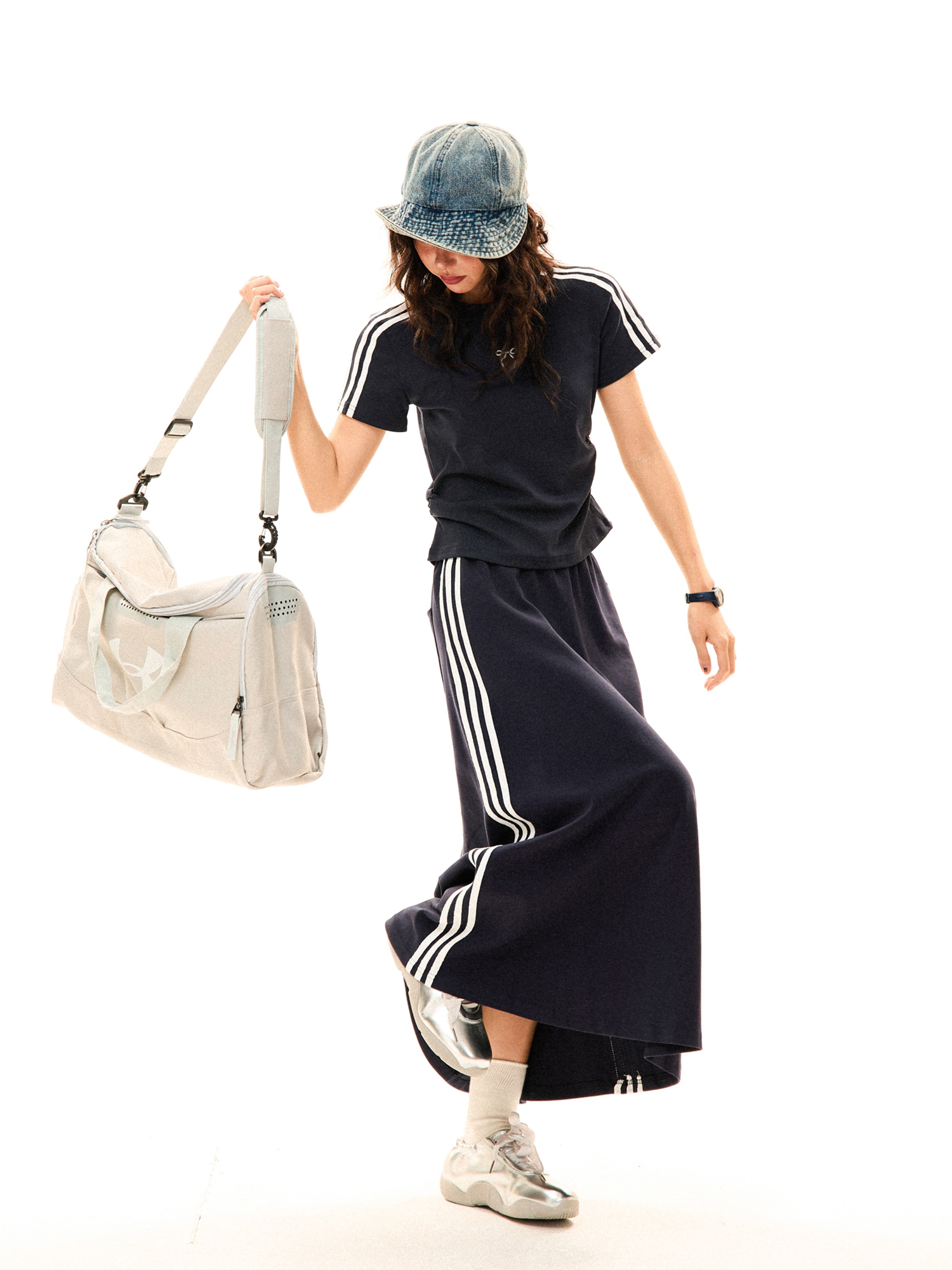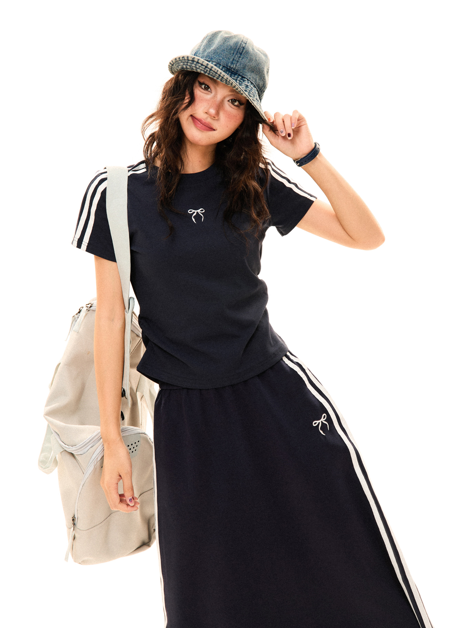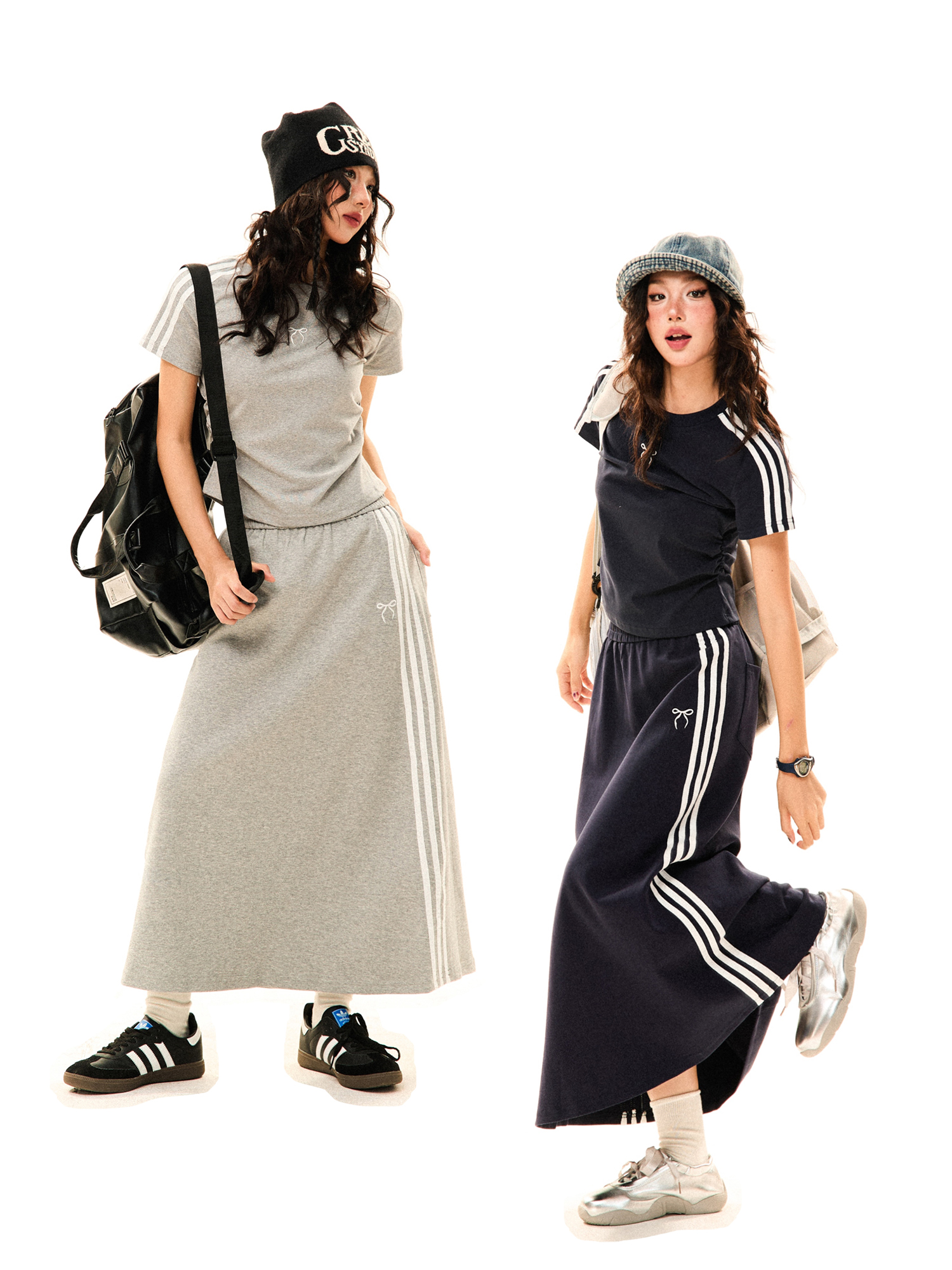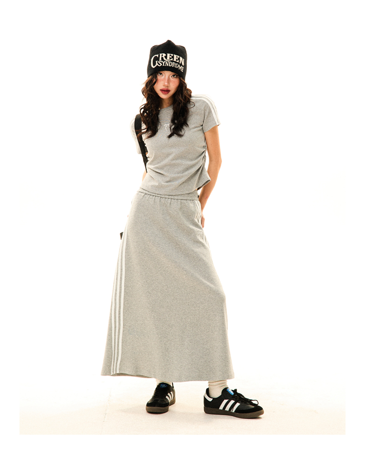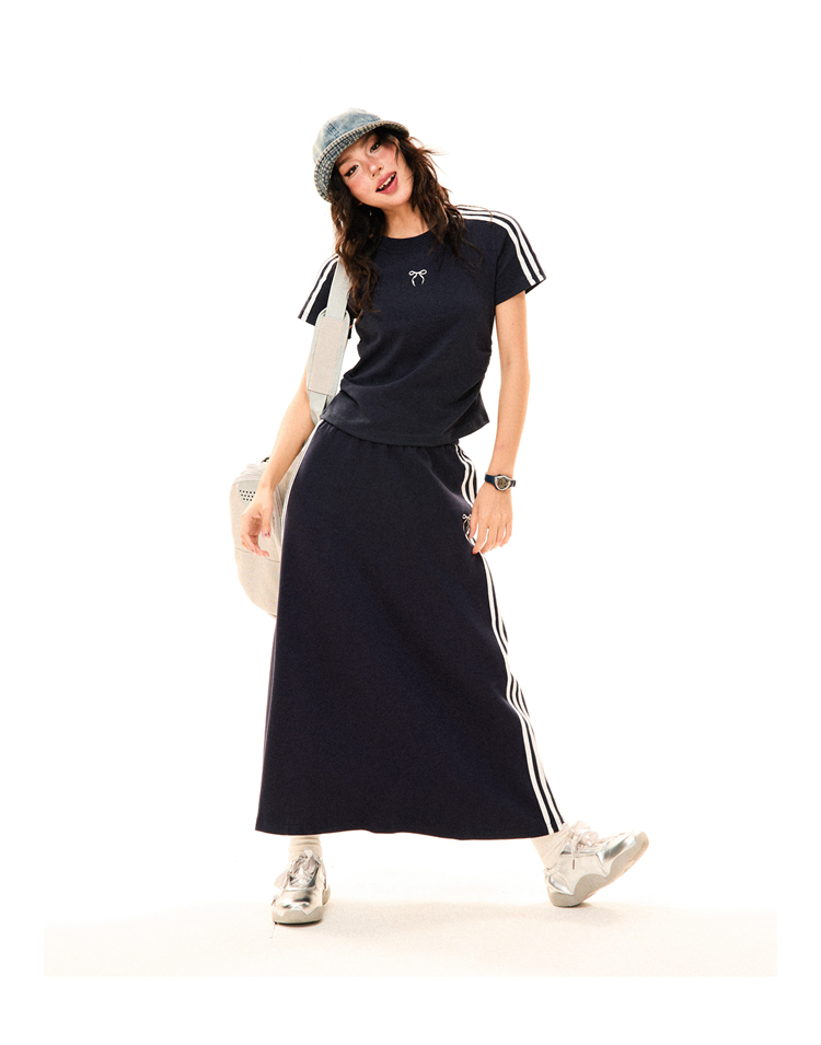 Women Retro Sports Set Three Stripes, Short Sleeve, High Wa – Skirt Outfits