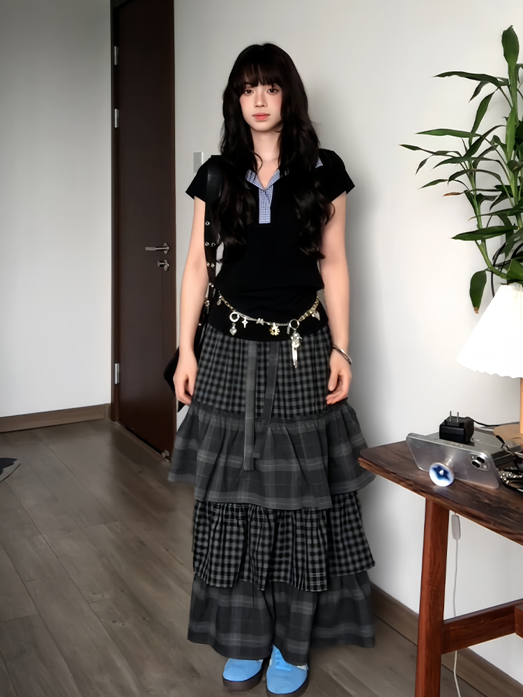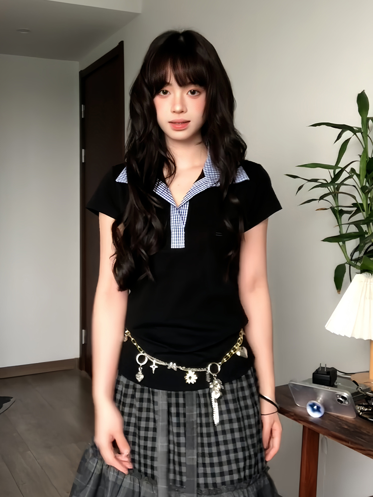 Women Summer Blue Plaid Splicing Polo Slim Fit Short Sleeve Two Outfit Girl Top High-quality product featuring going out outfits, spring outfit, vacation outfits and more. Modern design that fits the latest trends. Premium materials ensure durability and comfort. Order now for special offers! Product designed with attention to every detail. Suitable for all occasions and personal styles.