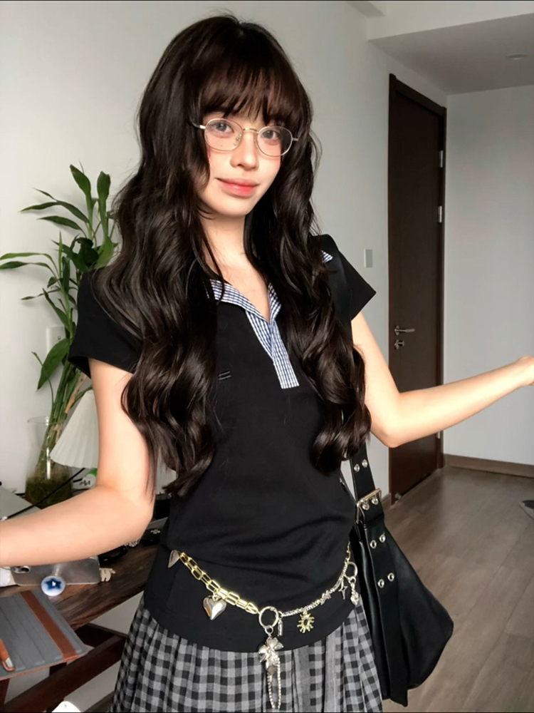 Women Summer Plaid Splicing Polo Collar Short Sleeve Slim Fit College Top High-quality product featuring college halloween costume ideas, fall fits, casual summer outfits and more. Modern design that fits the latest trends. Premium materials ensure durability and comfort. Order now for special offers! Product designed with attention to every detail. Suitable for all occasions and personal styles.