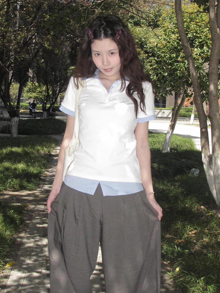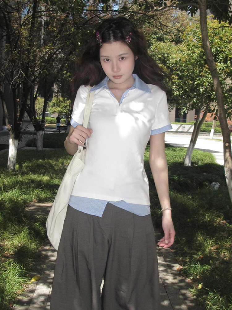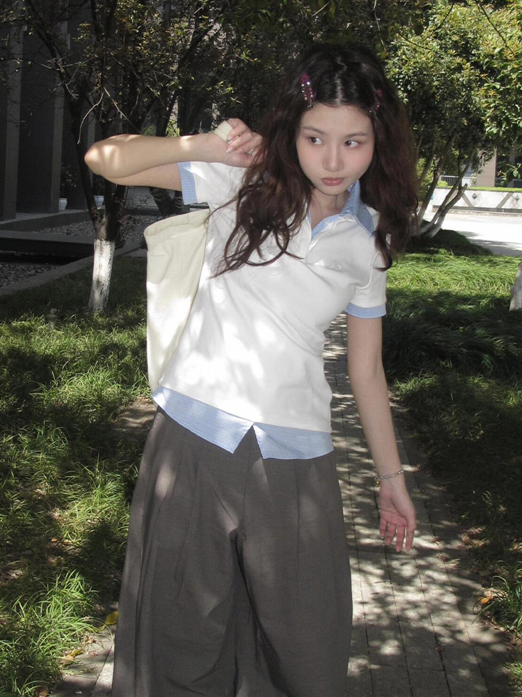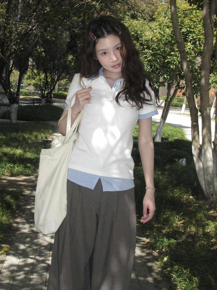 Women Summer Plaid V- Neck Polo Shirt Two Outfit Short Sleeve – Summer Fits