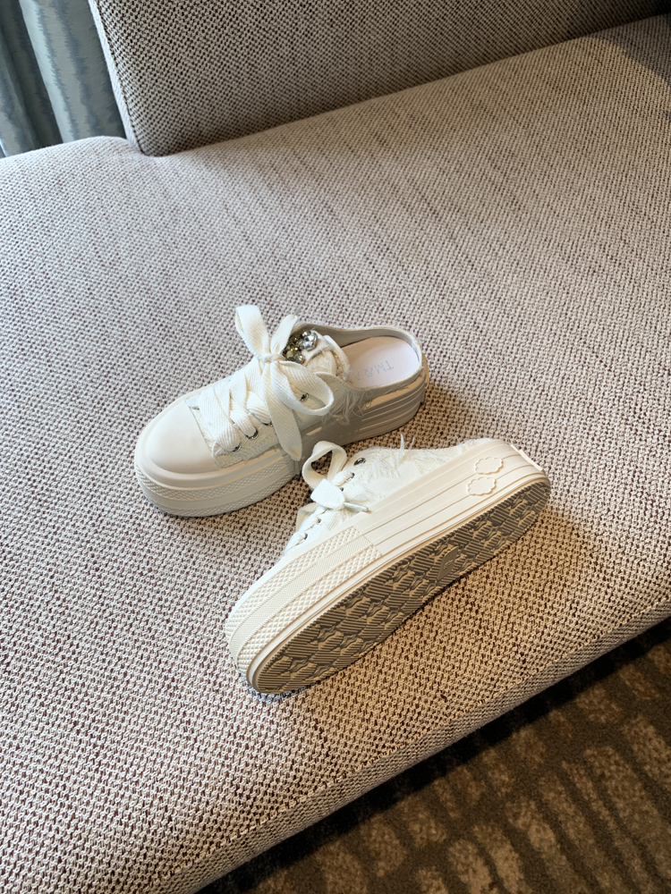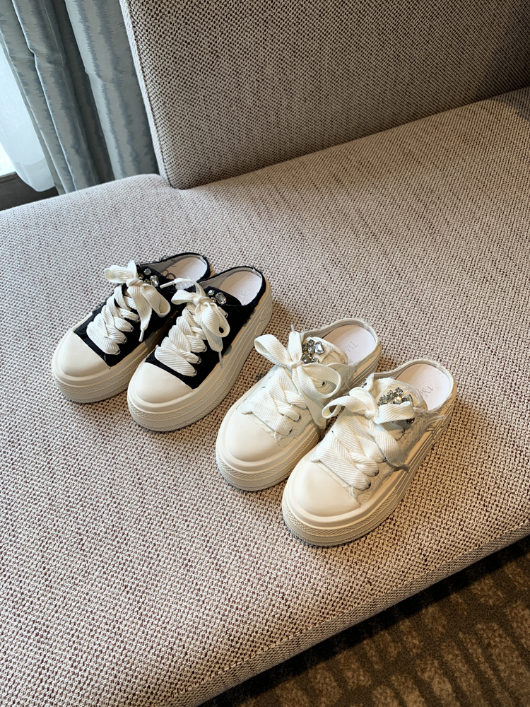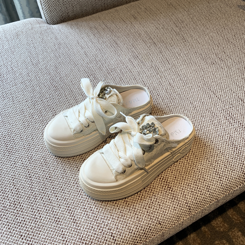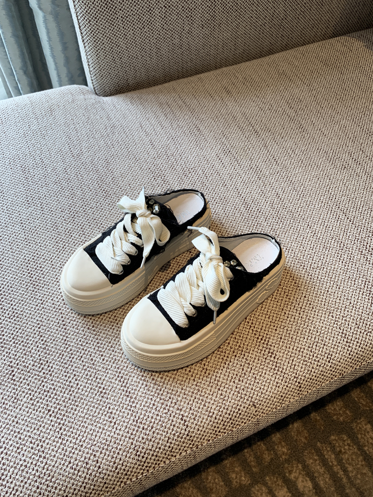 Stylish Thick Soled Lace-up Canvas Slippers for Trendy Spring Outfits