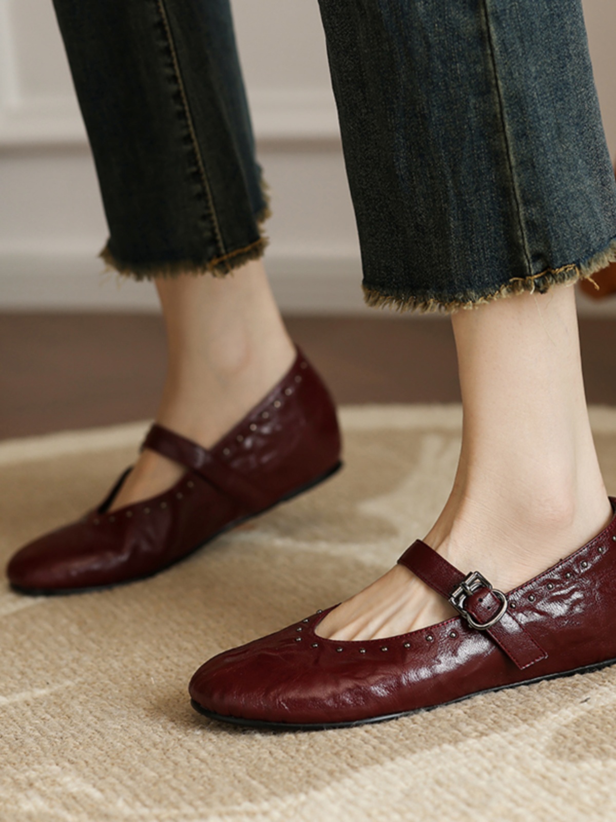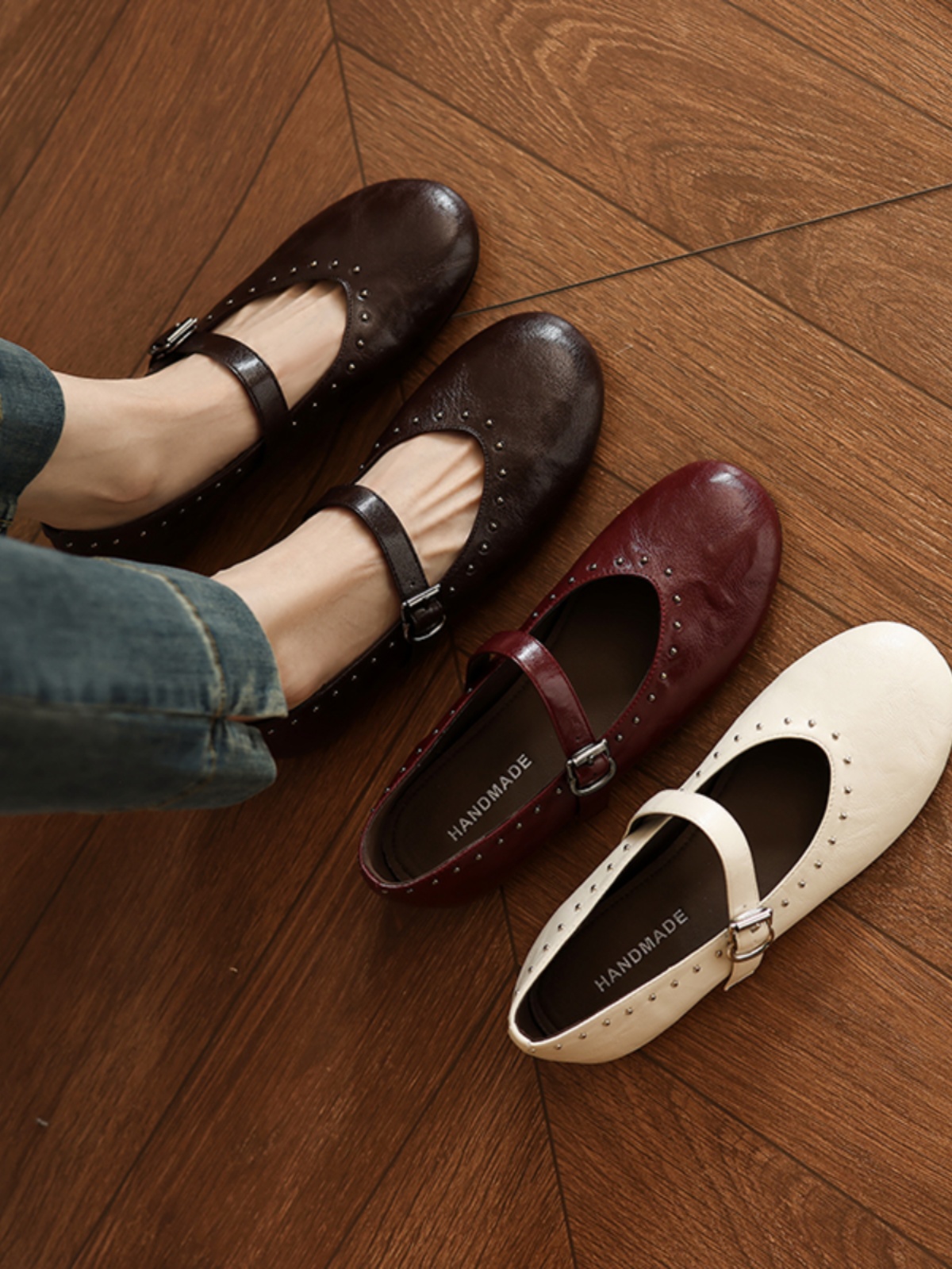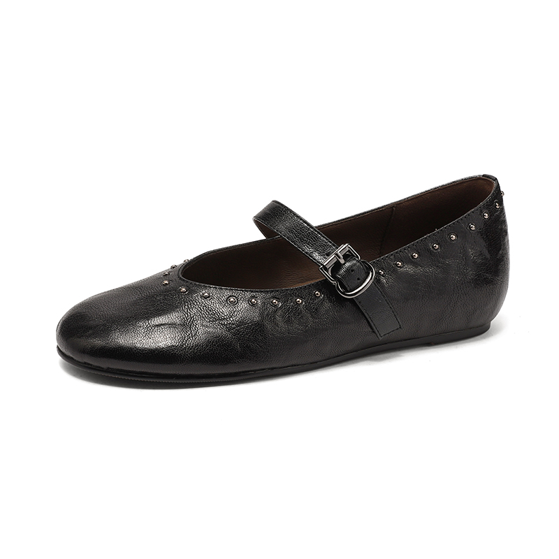 Women White Mary Jane Shoes Rivets, Soft Bottom Summer Flats, – Summer Fits