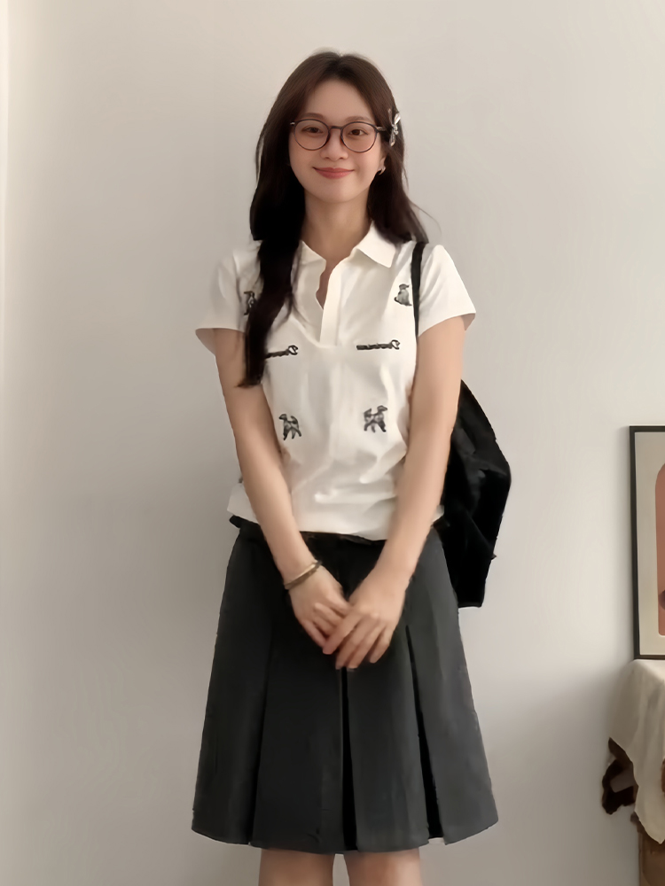 Women White Short Sleeve Polo Shirt Dog Embroidery Summer Fit – Summer Fits High-quality product featuring casual summer outfits, vacation outfits, spring outfit and more. Modern design that fits the latest trends. Premium materials ensure durability and comfort. Order now for special offers! Product designed with attention to every detail. Suitable for all occasions and personal styles.